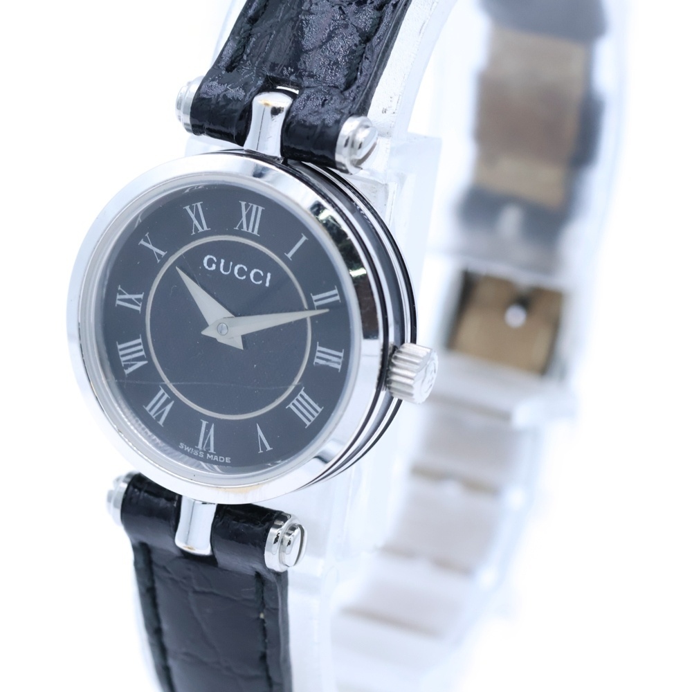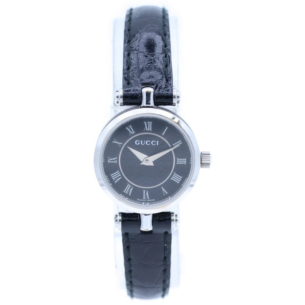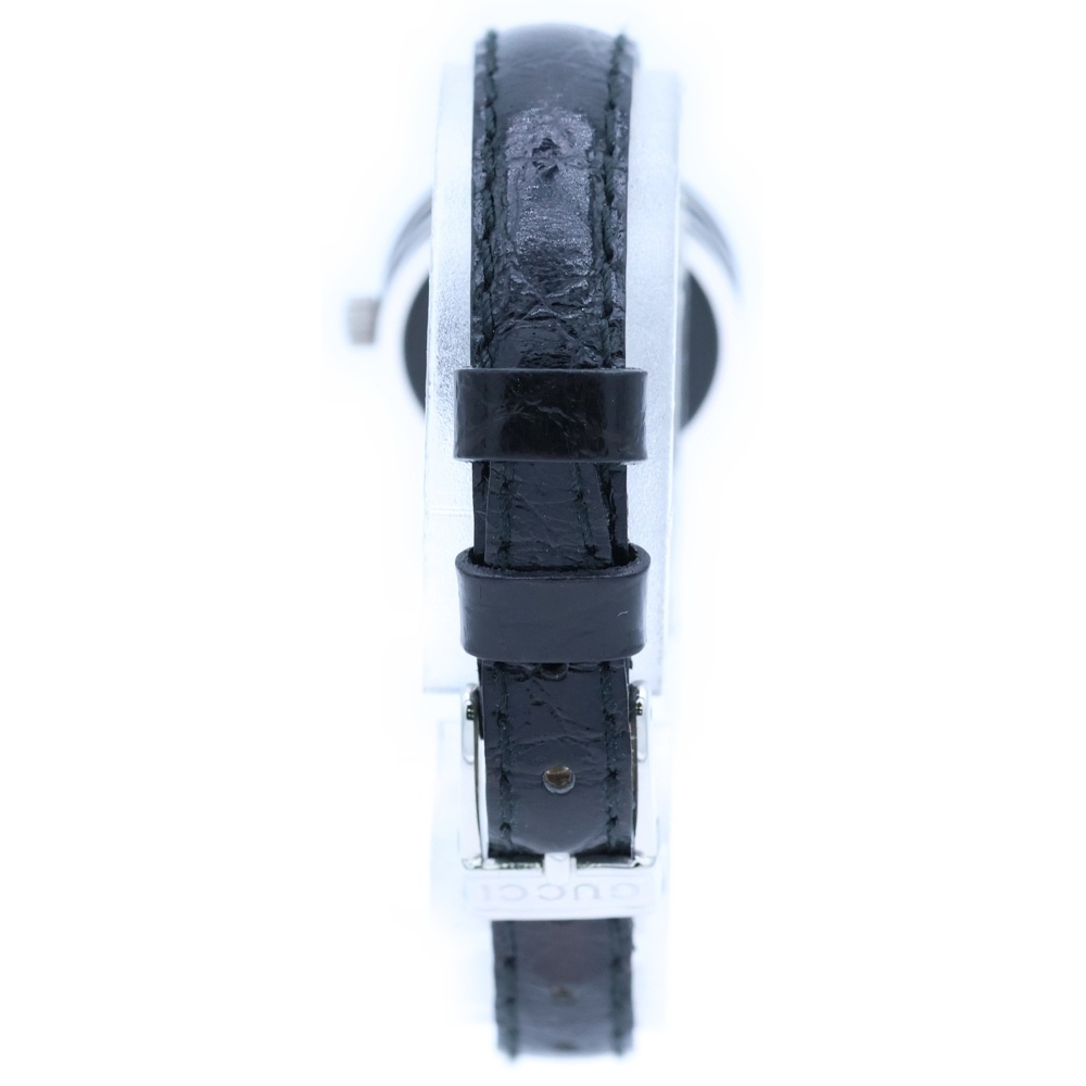グッチ シェリーライン ラウンド クロコ型押し エンボスレザーベルト ブラック文字盤 クォーツウォッチ 腕時計 シルバー/ブラック 2040L