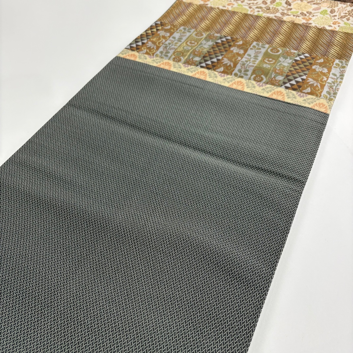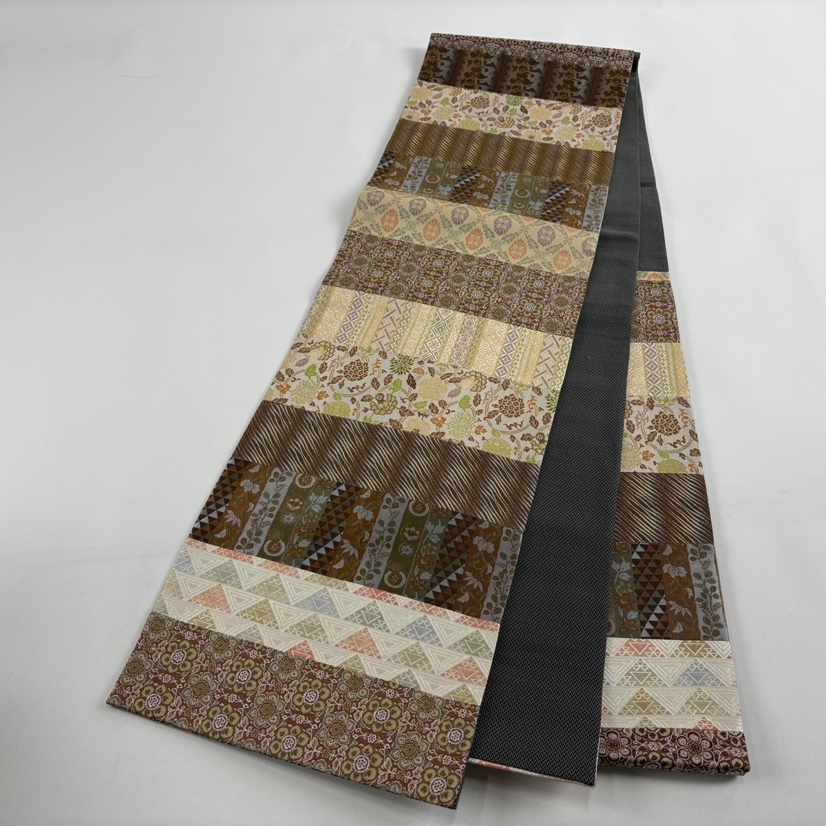 | 袋帯 美品 秀品 草花 幾何学模様 金糸 切嵌め 茶色 六通 正絹 【中古】 |