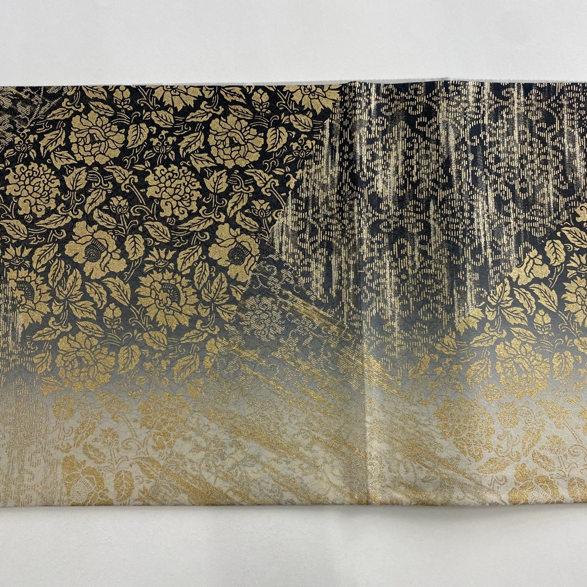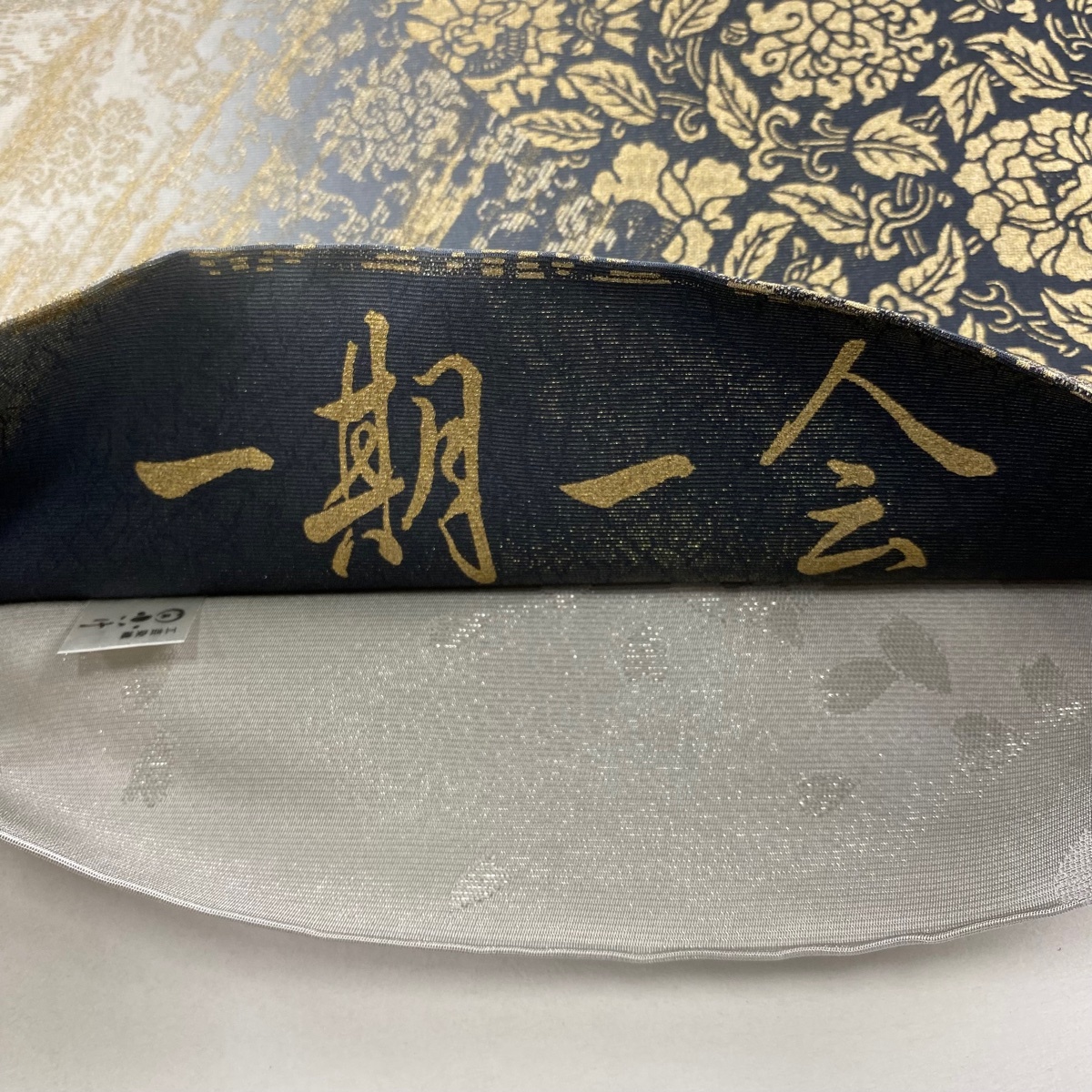 | 袋帯 名品 落款 一期一会 花唐草 草花 金銀彩 深緑 六通 正絹 【中古】 |