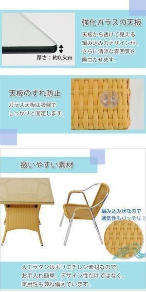 | 商品名 | 送料無料 ガーデンチェア ガーデン チェア ラタンチェア ラタン テーブル ラタンテーブル 人工ラタンチェア2脚 四角テーブル1台 3点セット 強化ガラス ナチュラル 籐 肘掛けカバー付 家具 ファニチャー インテリア スタッキングチェア リビング chair 椅子 南国 アジアン バリ風 リゾート ホテル ベランダ バルコニー 庭 rattan1765t3setna |
