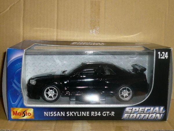 1/24 Maisto NISSAN SKYLINE R34 GT-R 黒です。箱が少し傷んでいて、ケースが箱からはがれていますのでご了承の上入札ください。商品の状況は写真でご判断の上、ノークレーム・ノーリターンでお願いします。保証はできませんが、定形外郵便での発送も可能です。