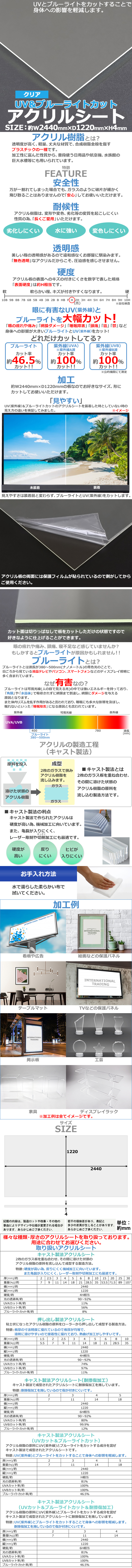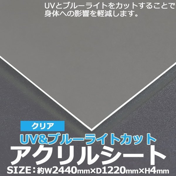 | 商品名 | アクリルシート アクリル板 ブルーライトカット UVカット キャスト板 約横2440mm×縦1220mm×厚4mm 原板 アクリルボード キャスト製法 紫外線 眼に優しい ボード クリア 保護パネル 液晶保護パネル 保護 カバー 透明 加工 パネル 板 シート acstuvnoml4mmgen |