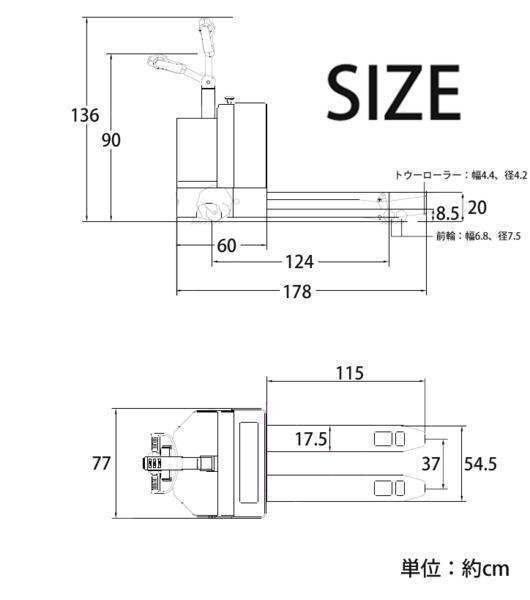 | 商品紹介 | ●走行、昇降ともに電動式なので、体への負担が軽く、女性でも楽々運搬ができます。 簡単操作で、走行スピードも調整可能。最大2tまで積載可能。 ●便利な充電式。 ●ローラーを2個搭載するするダブルローラーを使用。スムーズで耐久性にも優れたPU キャスターを採用。 ●組立不要の完成品。 ■均等荷重(kg):約2000kg ■材質:スチール、PU(車輪) ■モーター:DC(カーボンブラシを取り換える必要のないメンテナンスフリーのDCモーター) ■走行スピード:約4.5〜6.2KM/H(運搬物の重さによって変わります) ■上昇スピード:約0.04m/秒(運搬物の重さによって変わります) ■下降スピード:約0.05m/秒(運搬物の重さによって変わります) ■旋回半径:約2010mm ■登坂能力:約5〜12%(運搬物の重さによって変わります) ■バッテリー:24V/165AH ■電源:100V/50Hz〜60Hz ■重量:約520kg ■英文説明書付き ※北海道、東北(青森県、秋田県、岩手県、山形県、宮城県、福島県)・沖縄・離島の場合は、別途送料がかかります。予めご了承下さい。 尚ご注文の際は必ず、配送先に法人・事業所名の明記をお願い致します。 ★ご購入前の注意事項★ ●こちらの商品 大型の商品の為、 『西濃運輸の営業所止め』となります。 あらかじめご了承ください。 ●商品は大変重量がございますので、パレットに固定しての輸送となります。 荷受けには、フォークリフトなどが必要になります。(お客様ご自身で、ご用意お願いします。) ●新品商品ではありますが、輸入商品の為、多少の擦り傷などがある場合がございますので、 ご納得の上 ご購入下さいませ。 ●ご購入後、お客様ご都合による ご返品、ご返金等は一切お受け致しておりません。 ●本商品を使用した際に発生したトラブル、事故に つきまして、当社は一切の責任を負いません。 ご使用に関しましては、全て自己責任にてお願い致します。 |