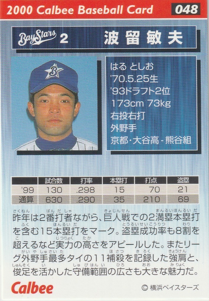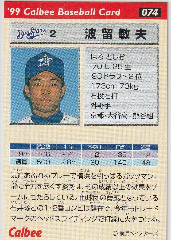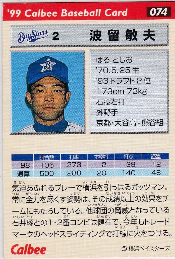 ●1999カルビー 【波留 敏夫】 BASEBALL CARD No.074:横浜