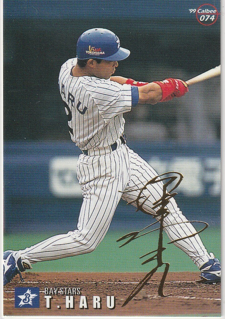 ●1999,00カルビー 【波留 敏夫】プレ版:金箔押サインパラレル No.074,048:横浜