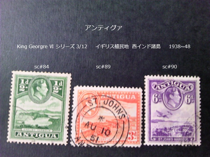 アンティグァ K.G.Ⅵ 英植民地 1938~48 sc#84,89~90