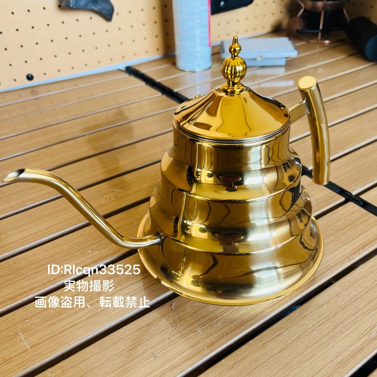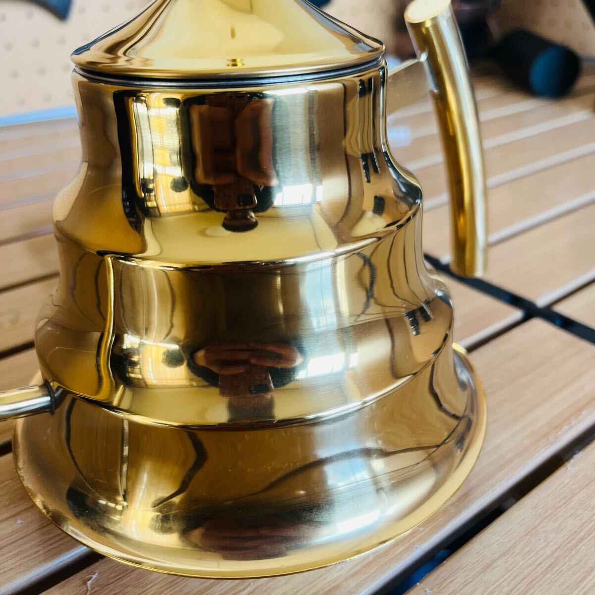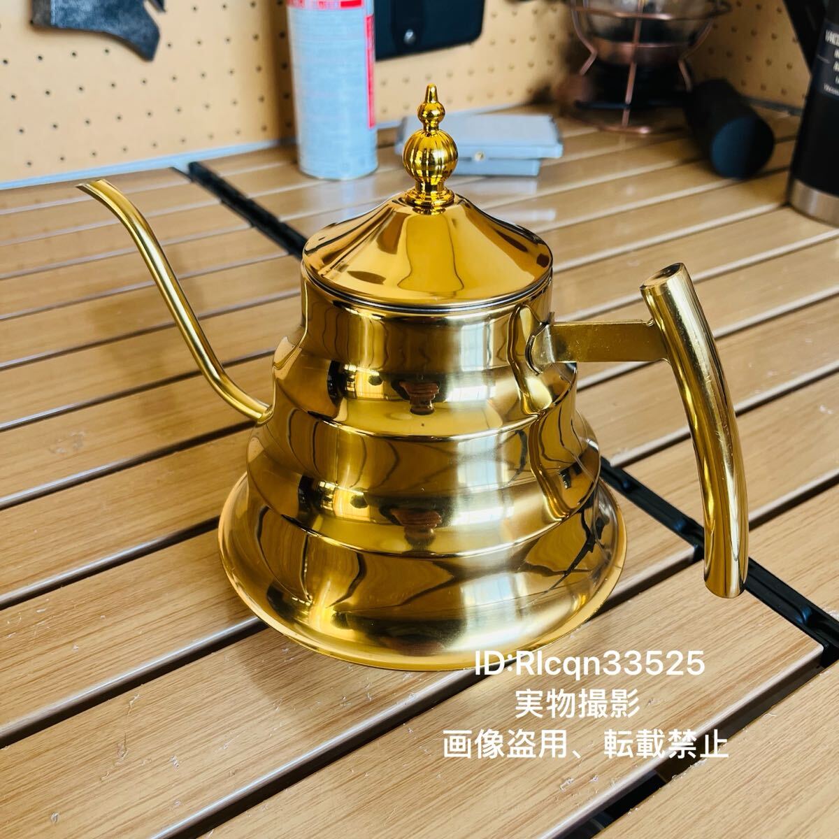 ゴールドめっき 超高品質 ステンレス製 細口 コーヒーポット 頑丈 キャンプ用 大容量1.2L アウトドア 25x12x19cm