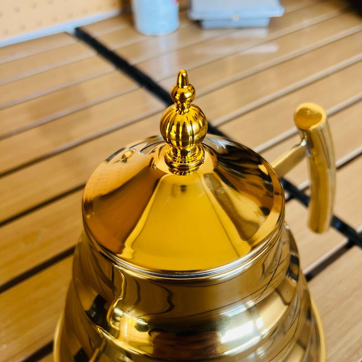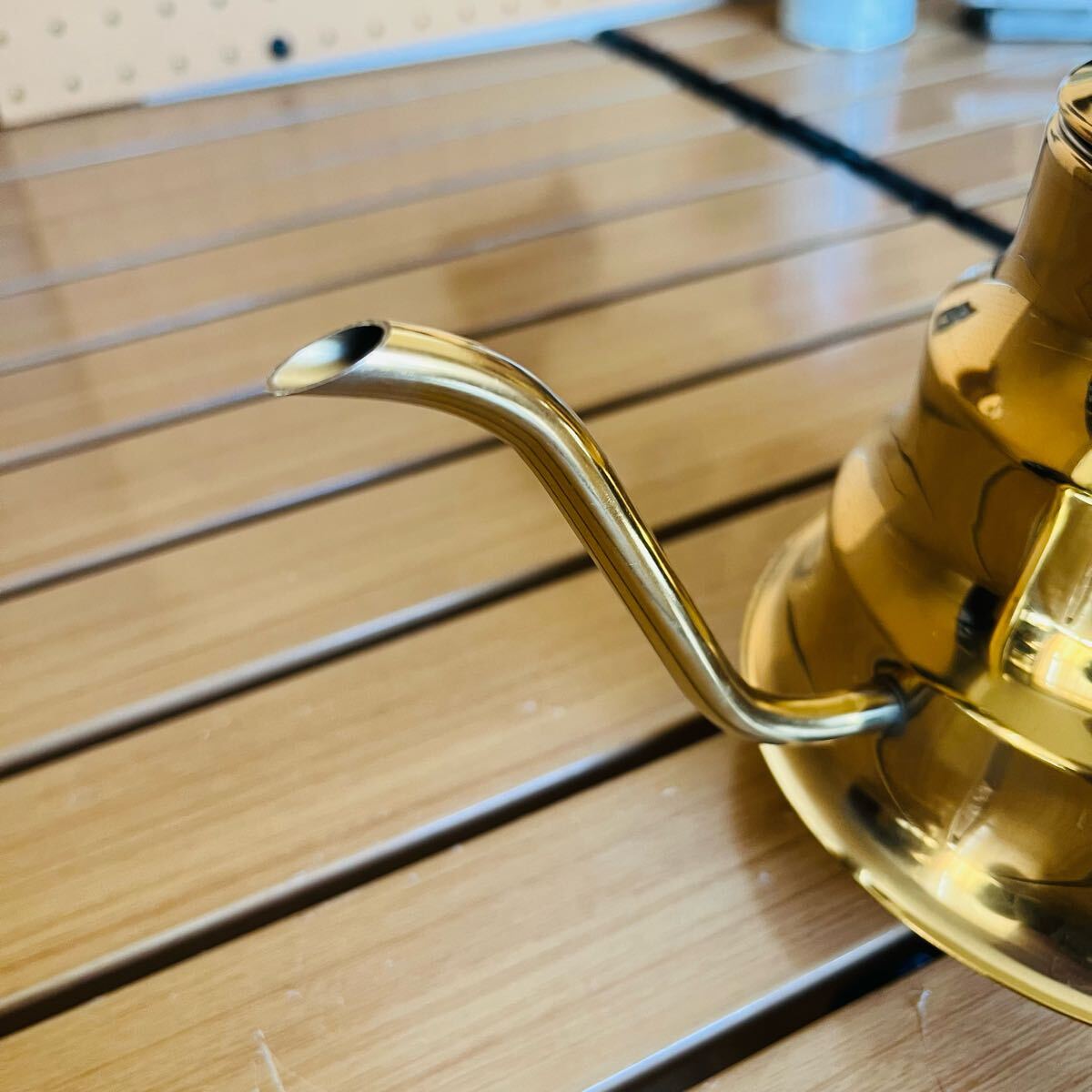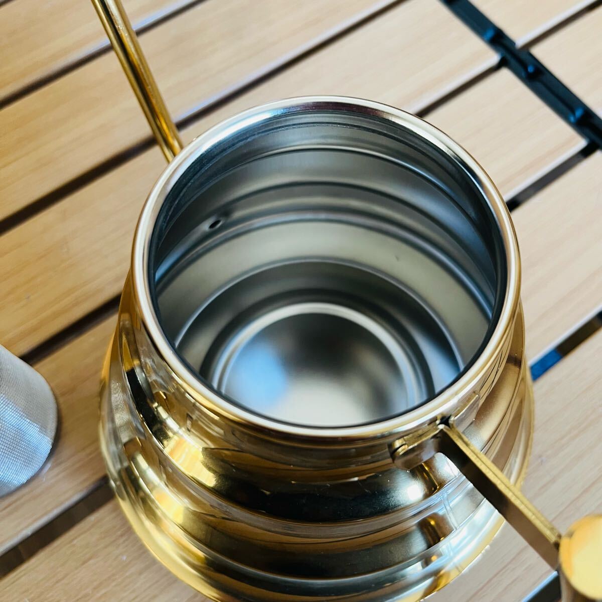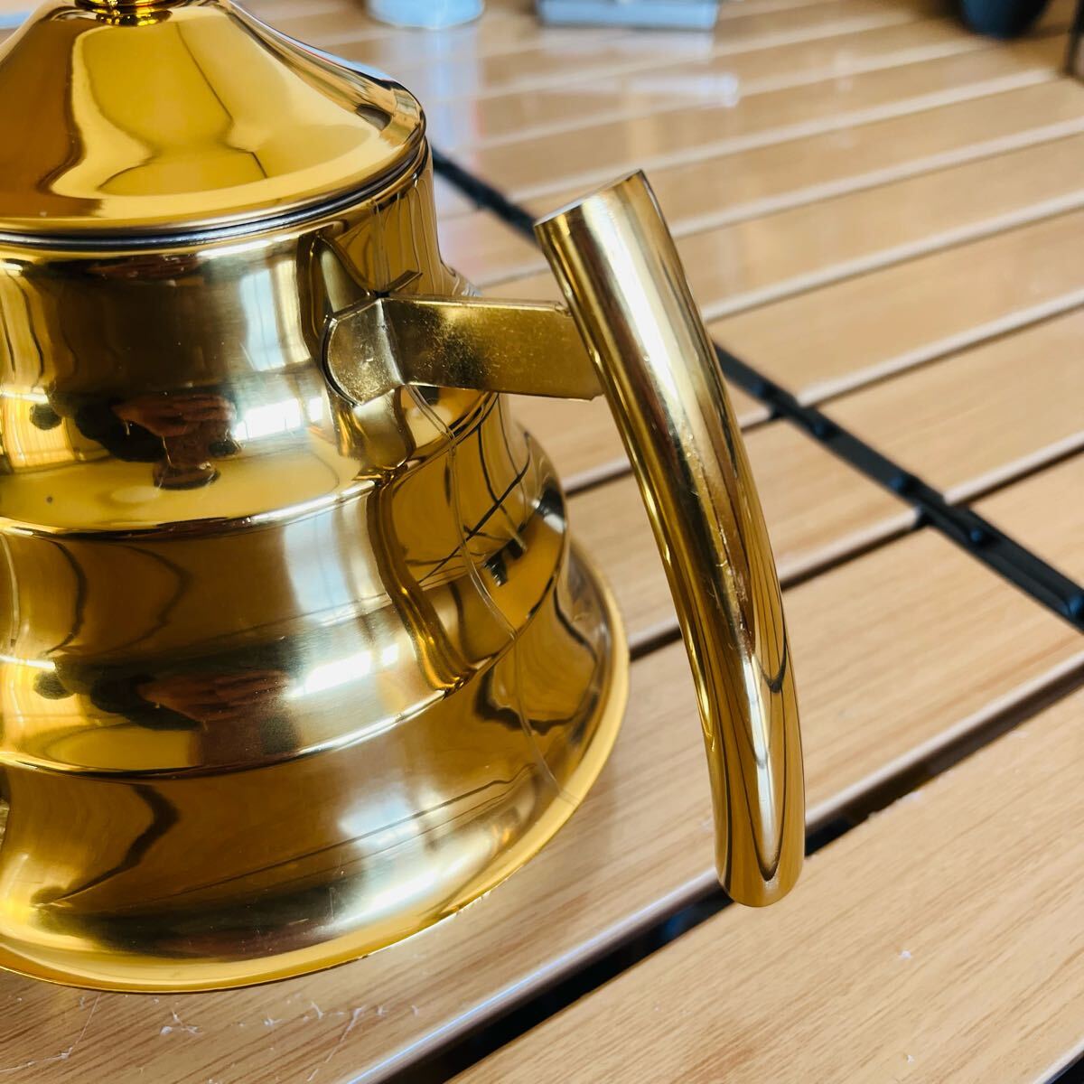 ゴールドめっき 超高品質 ステンレス製 細口 コーヒーポット 頑丈 キャンプ用 大容量1.2L アウトドア 25x12x19cm