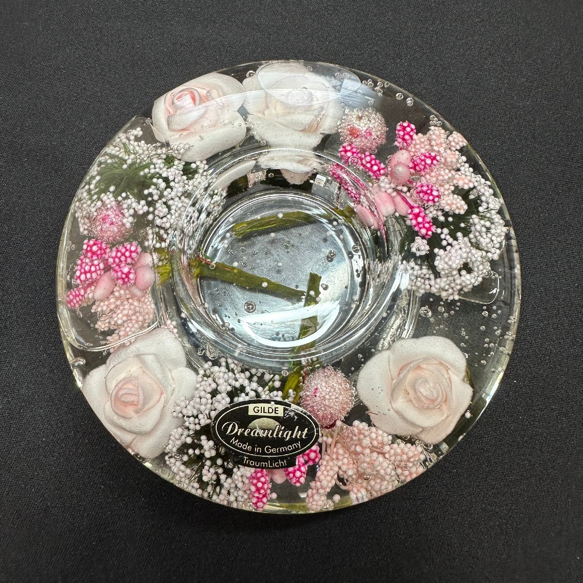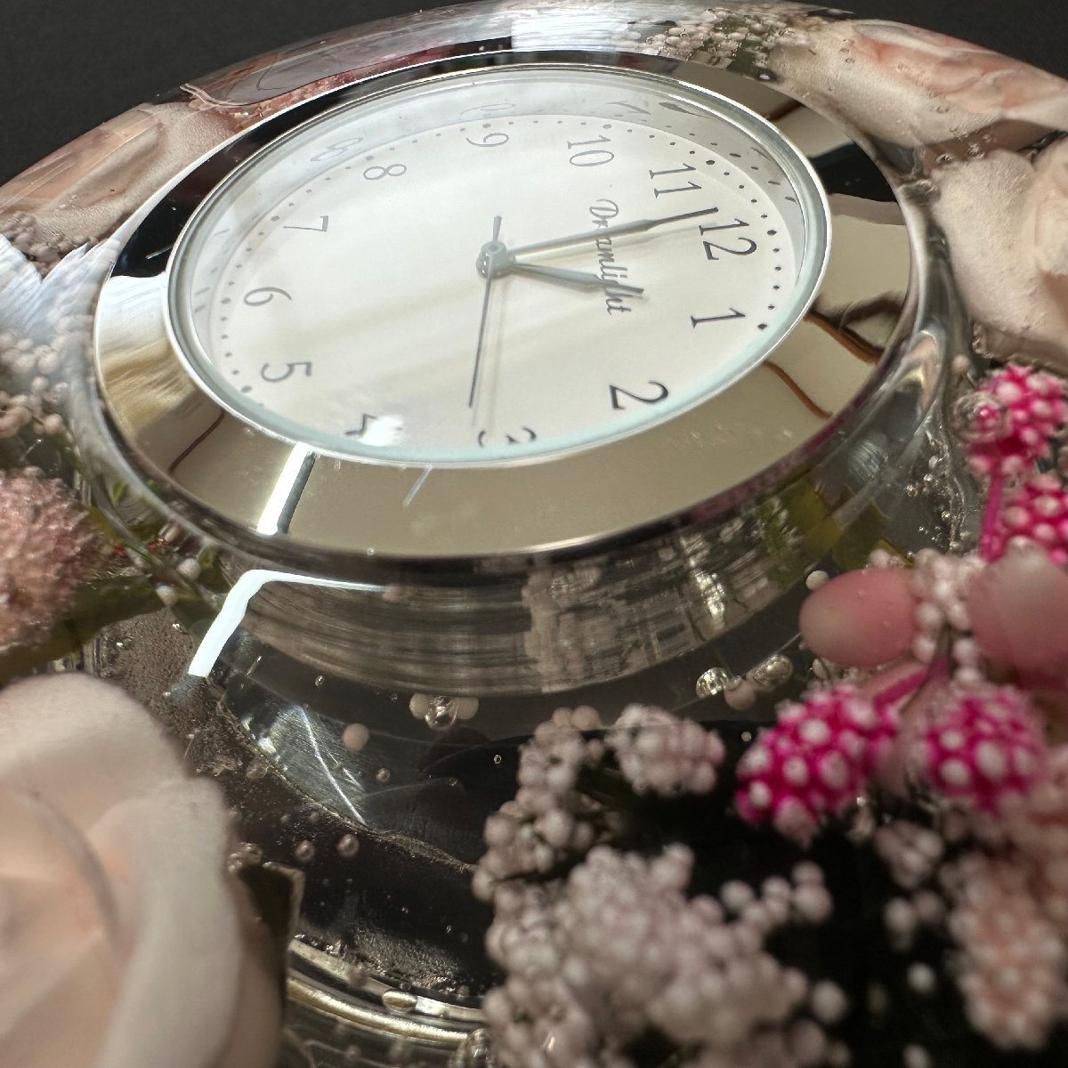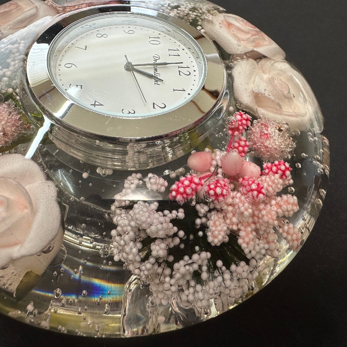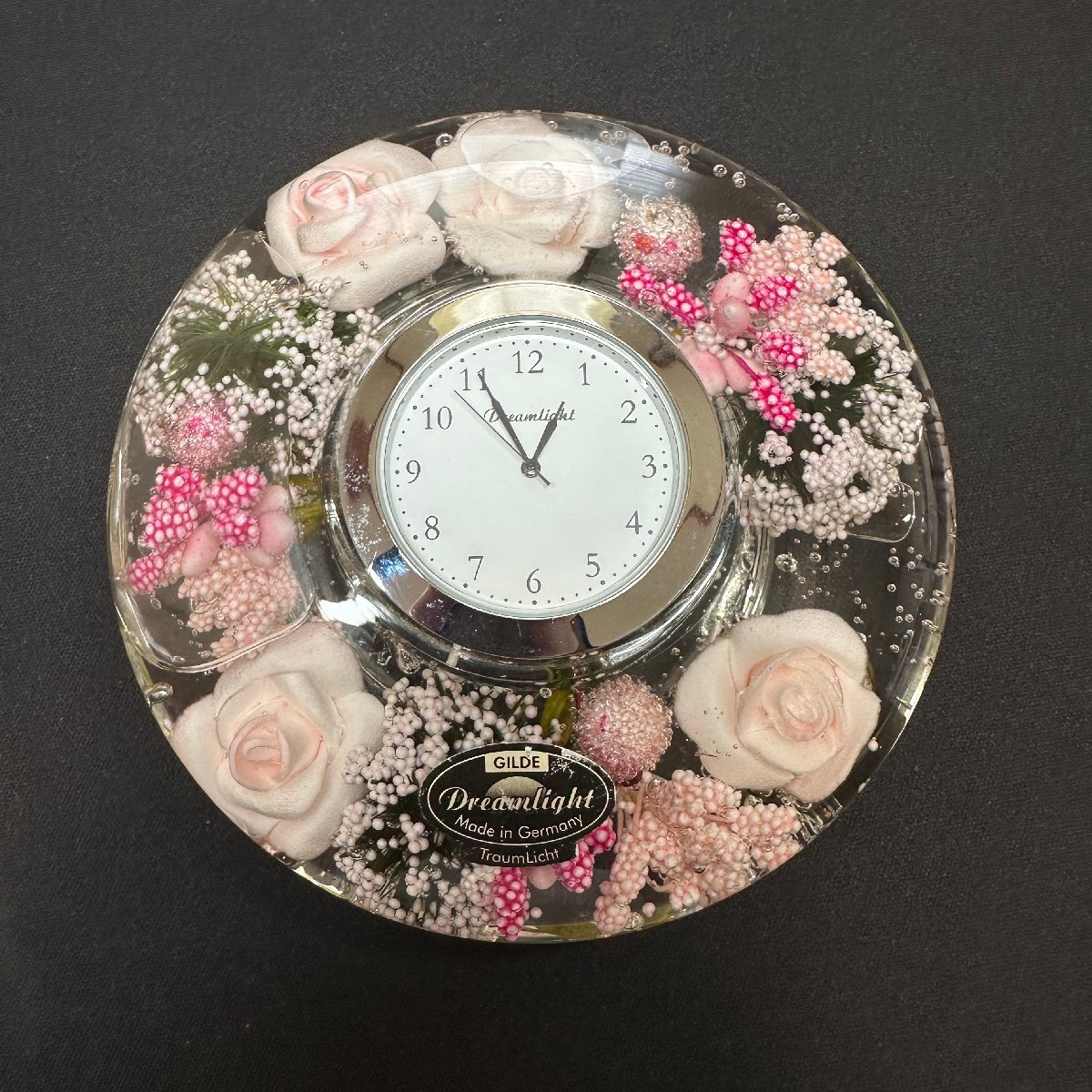 q1470 Dreamlight ドリームライト クロック時計 リトルローズ ガラス 硝子 置き時計  動作確認済 インテリア雑貨