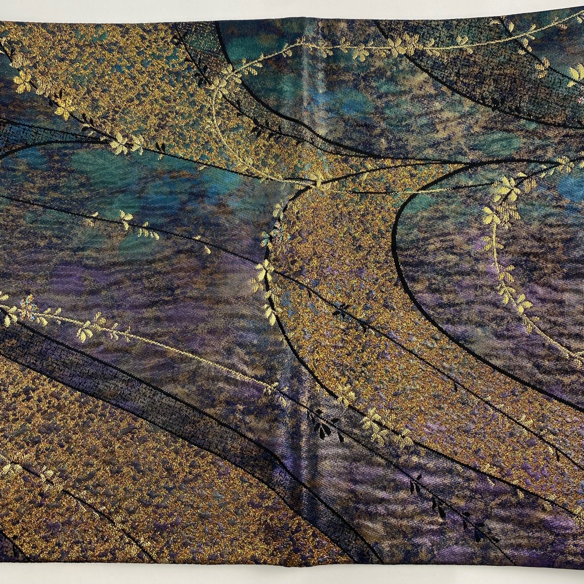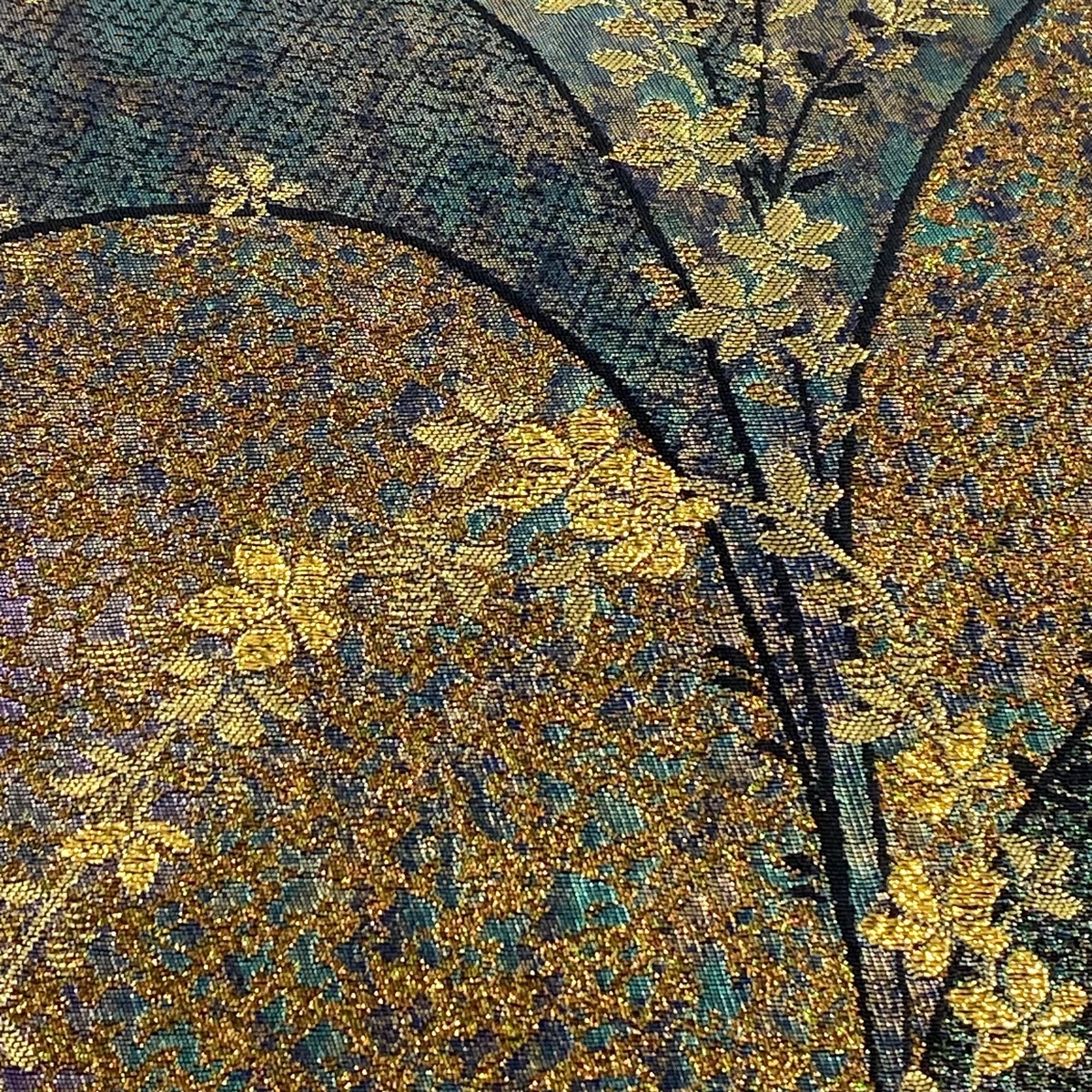 | 袋帯 美品 秀品 枝花 幾何学模様 箔 深緑 六通 正絹 【中古】 |