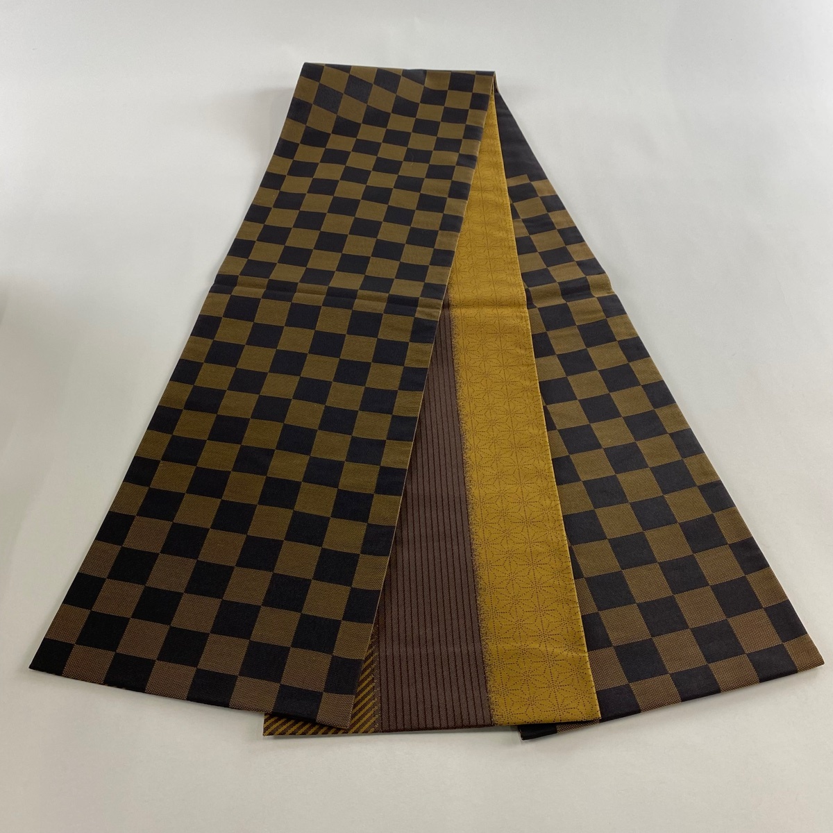 | 袋帯 美品 秀品 市松 箔 茶色 六通 正絹 【中古】 |