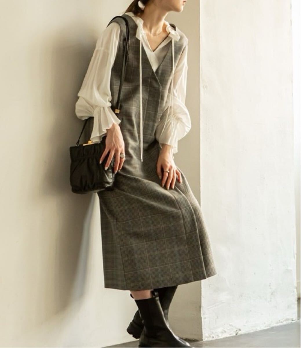 ゆとりのあるIラインで上品に着られる大人シルエットのジャンパースカート。シックなグレーベースのチェック柄が、クラシカルな雰囲気をメイク。細かな模様なので主張しすぎず、デイリーにも綺麗めにも様々なシーンに投入できます。ファスナーを同色にする事で全体に馴染ませ、前を開けてジレ風に羽織る際も目立ちすぎずに着られるようにアップデート。ダブルジップ仕様で、裾を少し開けてスリットのようにしても着用可能。タートルニットからブラウスまで幅広いアイテムとの組み合わせを楽しんで。