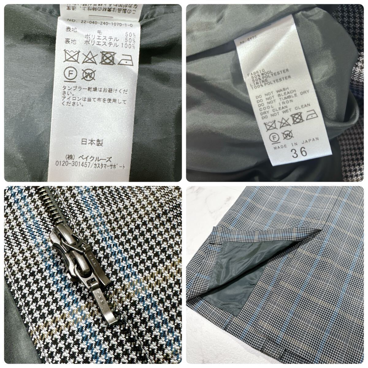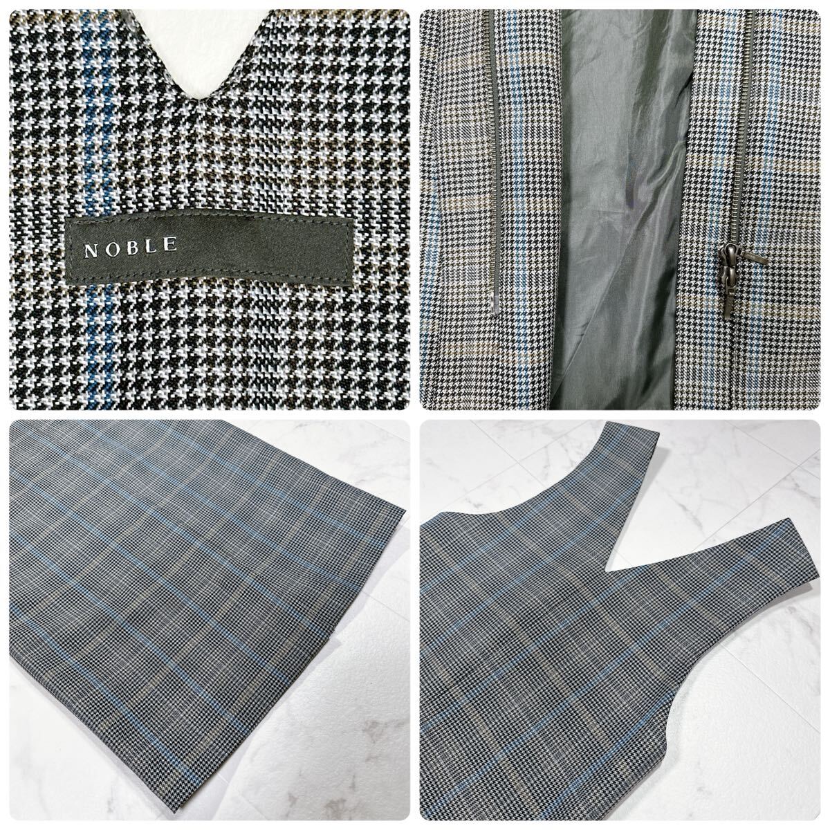 美品 Noble ノーブル チェックナローロングジャンスカ ジレ ロングジレ 千鳥柄 毛混 ダブルジップ 日本製