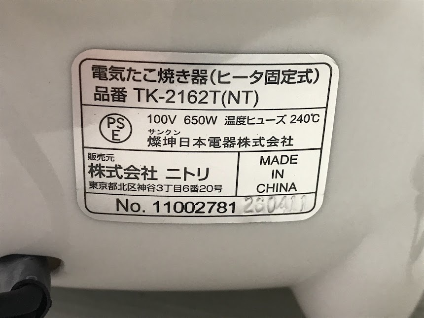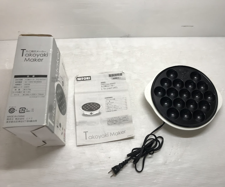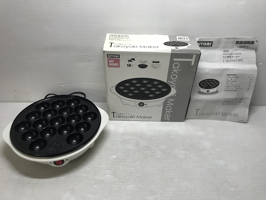 P/ニトリ/たこ焼きメーカー/TK-2162T/ヒータ固定式/PSEマーク/NITORI/箱付き/取説付き/動作確認済み/P11.4-22森