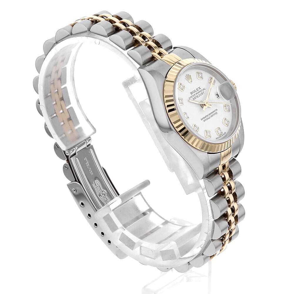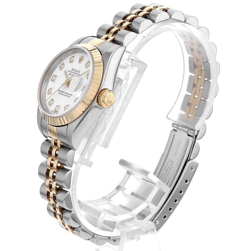 | モデル情報 | 1945年に誕生し、今やロレックスの顔とも言える"デイトジャスト"。ロレックスの三大機構(オイスターケース、パーペチュアル機構、デイトジャスト機構)を全て備えたモデルです。エレガンスとクラシカルなデザインで女性の腕元を華やかに彩ります。ダイアル色・ケース素材などの組み合わせは多岐に渡り、非常に多彩なバリエーションが存在するのが最大の魅力です。 |
