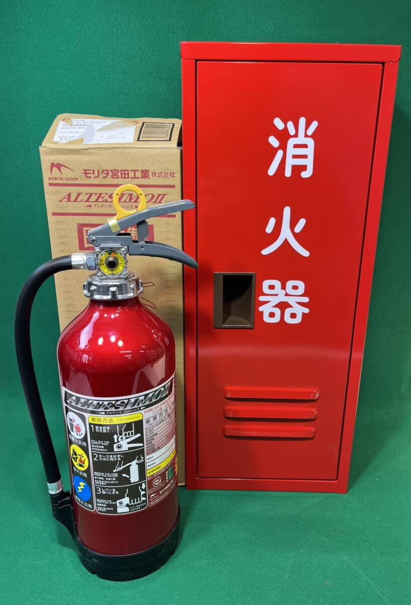yw251115-006J モリタ宮田工業 ALTESIMOⅡ MEA10B 3.0㎏ 2024年製 消火器 消火器収納箱セット 防災 設計基準使用期限2037年まで