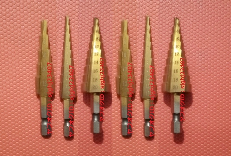 □Ⅱ螺旋ステップドリル 6本セット 小大 スパイラル タケノコ ゴールド ドリルビット 鉄工 電動インパクトドライバー工具キリ 送料無料