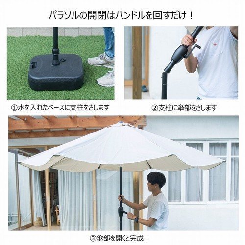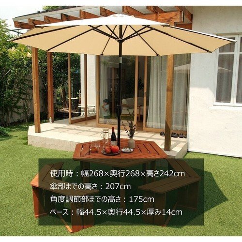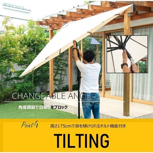 | 即決可@新品角度変えられるパラソル+専用ベース/ベージュ | ||||||||||||