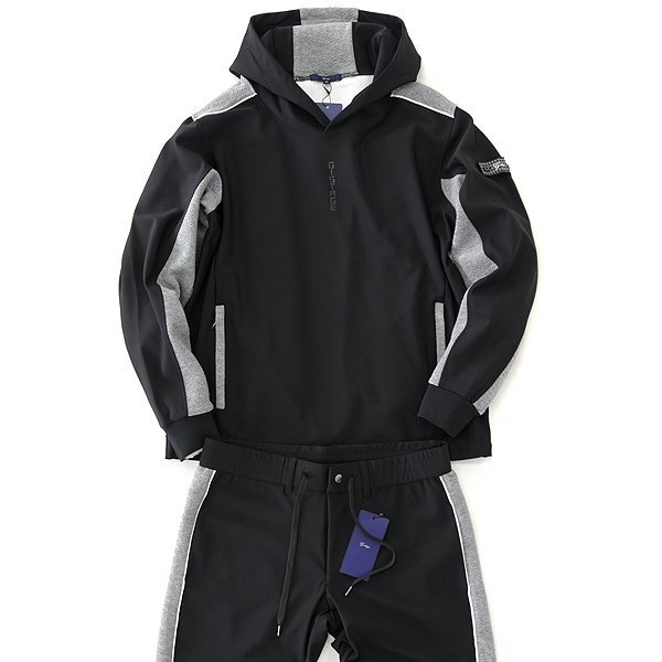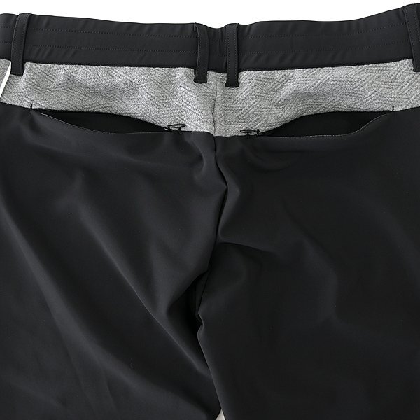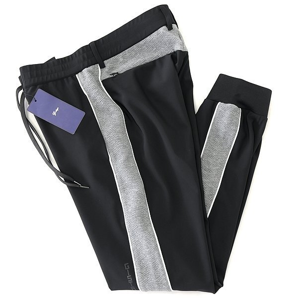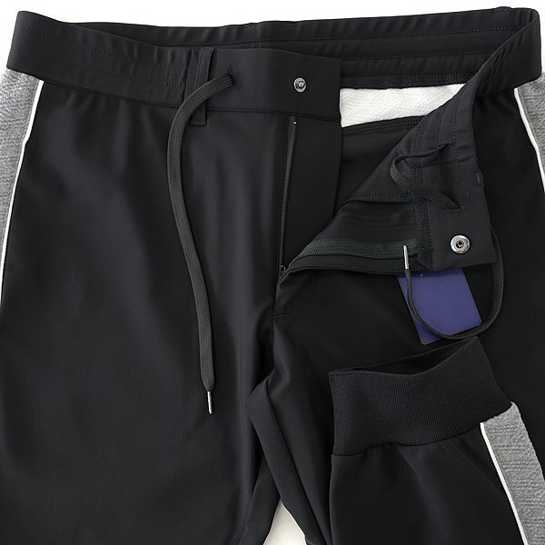 | 新品 未使用 紙タグあり ※商品画像のセットアップパーカーは別売りです※ 48サイズ(Lサイズ相当) ウエスト86 ※商品に記載されたサイズ・寸法です※ ウエスト実寸84~94cm(内回り1周・ゴム入り) 股上25cm 股下76cm 裾幅12.5cm(リブ使用) 腿幅28.5cm(股下10cm部分) ※伸縮性がある素材のため多少誤差が生じることがあります※ 表地表側:ナイロン72% ポリウレタン28% 表地裏側:ポリエステル100% 別布:ポリエステル54% 綿44% ポリウレタン2% リブ:ポリエステル100% ブラック×グレー |