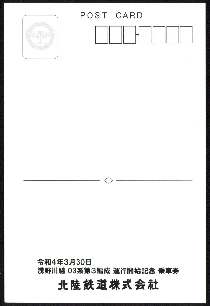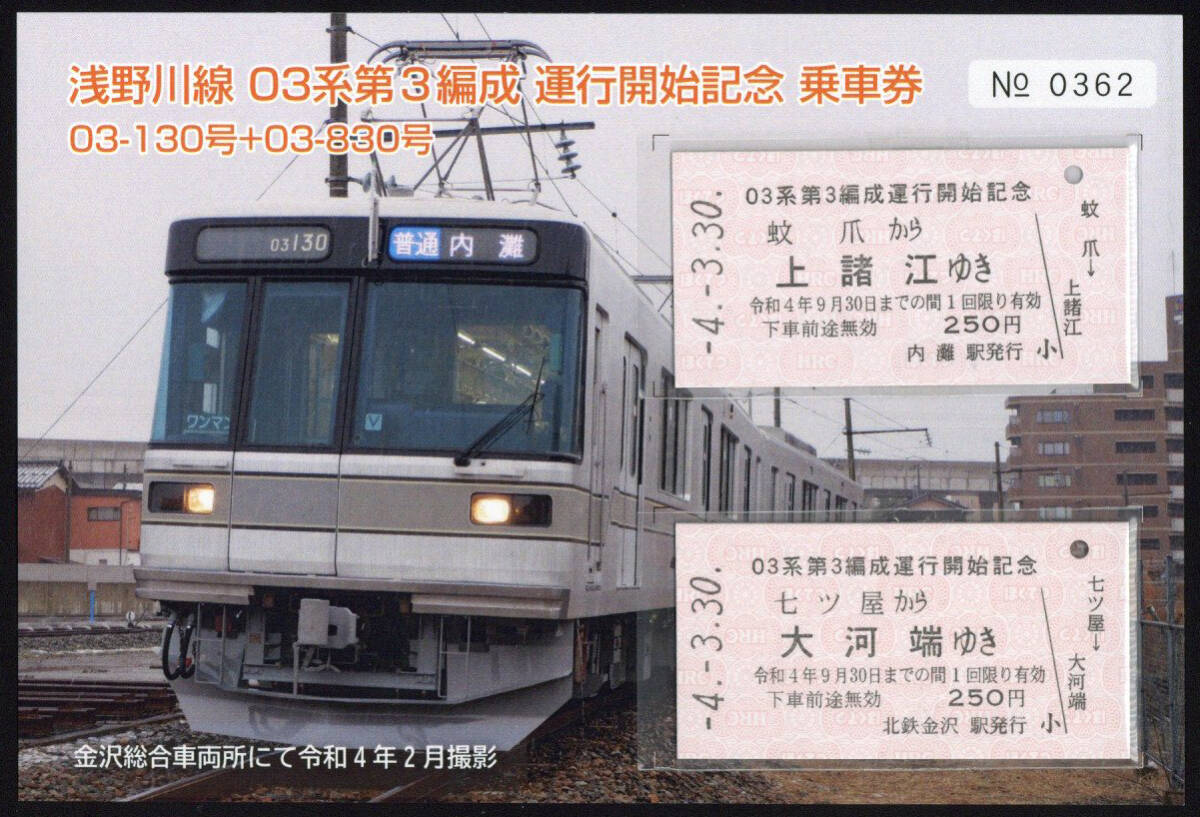 R4 北陸鉄道 佐野川線 03系第3編成 運行開始記念乗車券