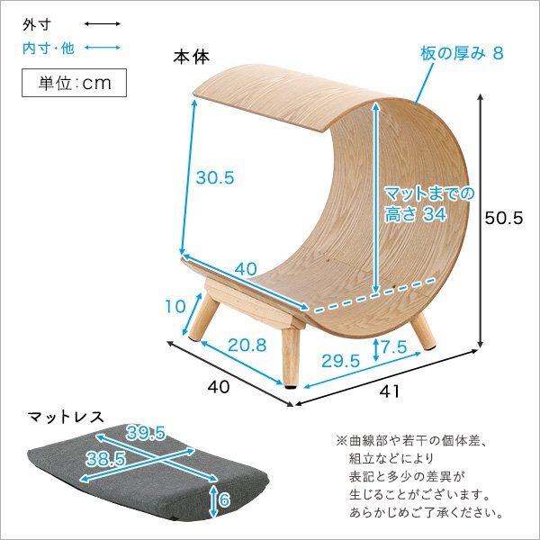 【カラー】 ブラウン、ナチュラル 【サイズ】 W41×D40×H50.5cm 【重量】 3kg 【素材】 フレーム:天然木化粧繊維板(アッシュ) 脚:天然木(ラバーウッド) ラッカー塗装 【梱包】 サイズ:45×45×42cm、重量:4kg 【その他】 マットレスのクッションはカバー取り外して手洗い可 【完成品】 脚のみ取り付け。 【ご注意】 ・サイズ、重量は概算です。 ・商品カラーはご使用のモニターによって実際の明るさや色と異なって見える場合がございます。 |