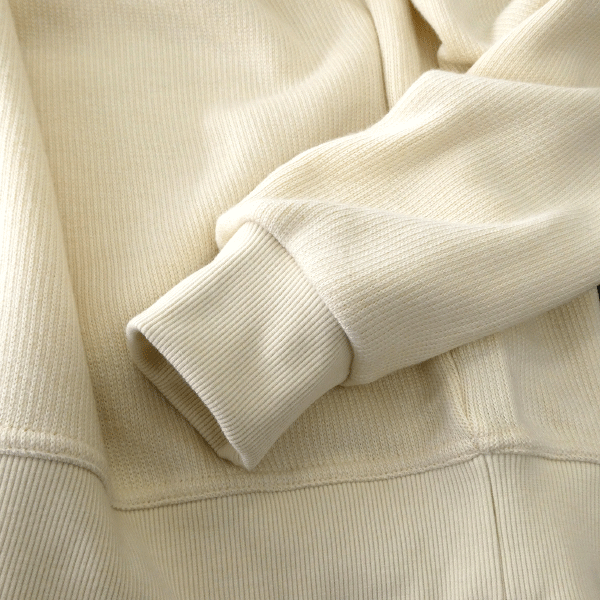 リブ編みのような表情を持つニット生地で仕立てた、季節感あふれる裏暖クルーネックトレーナー。 裏側にはソフトなマイクロフリース素材を使用し、軽やかさとぬくもりを両立。 ふんわりと包み込まれるような快適な着心地が魅力です。 ベーシックなクルーネックデザインに、左胸のワンポイント刺繍がさりげないアクセント。 さらに、同じく左胸にはボタンで開閉できるポケットを配し、デザイン性と実用性を兼ね備えた仕上がりに。 シンプルながらも素材の立体感が際立ち、カジュアルにもきれいめにもマッチ。 一枚で着ても存在感があり、シャツとのレイヤードスタイルにも映える万能アイテムです。 ――暖かさと上質感を兼ね備えた、大人のデイリーウェアにふさわしい一着。 |