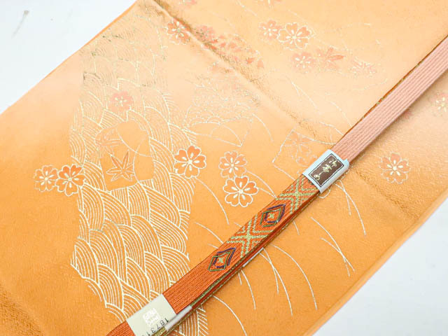 《京都一輝堂》リサイクル着物 和装小物 帯締め帯揚げセット 高麗組 金糸 金彩 花文 帯締 帯揚 25w06-7896