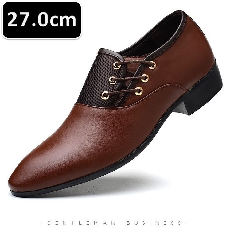 メンズ ビジネス レザー シューズ ブラウン サイズ 27.0cm 革靴 靴 カジュアル 屈曲性 通勤 軽量 柔らかい 新品 【228】