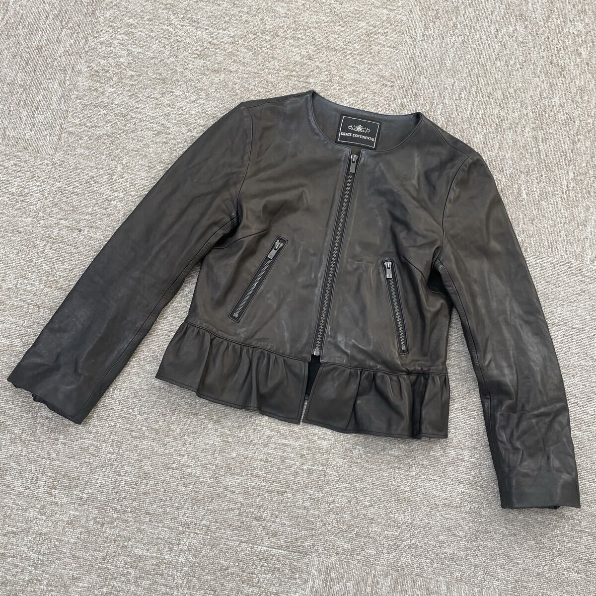 グレースコンチネンタルらしい、女性らしいシルエットが魅力のレザージャケットです