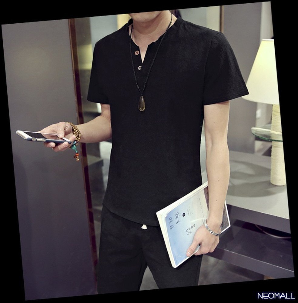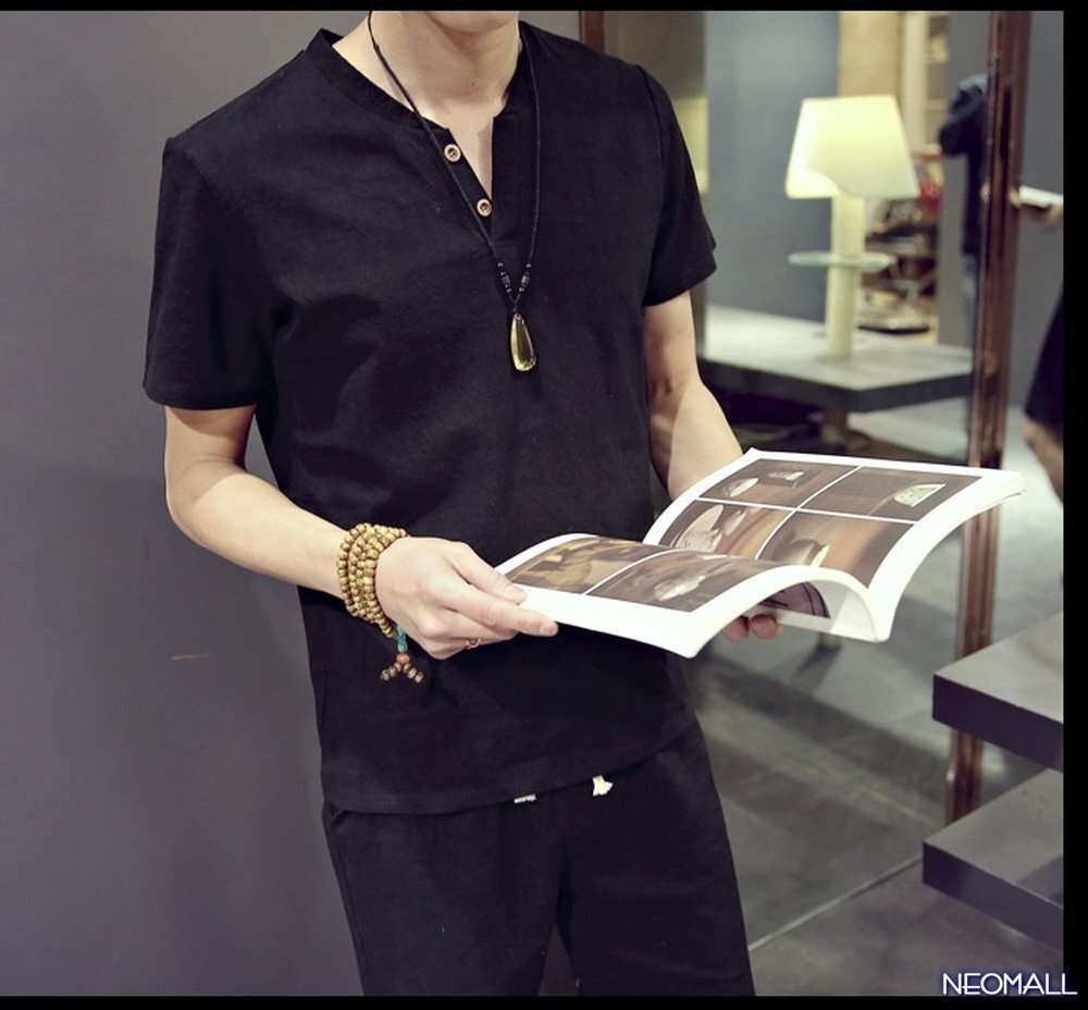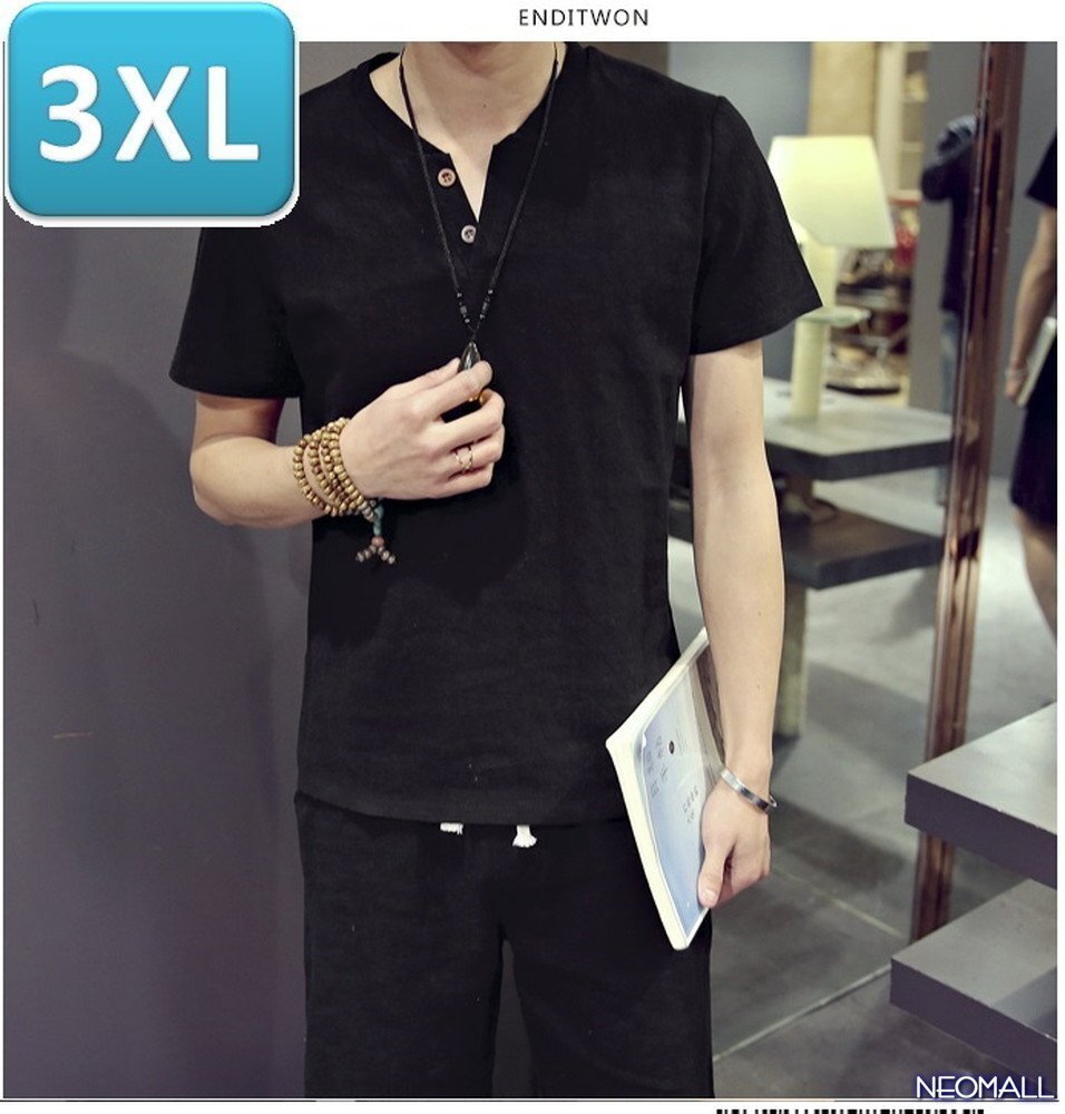 人気商品☆【276】 新品 サマーコットン ヘンリーネック セットアップ ブラック 3XLサイズ 春 夏 部屋着 ルームウエア