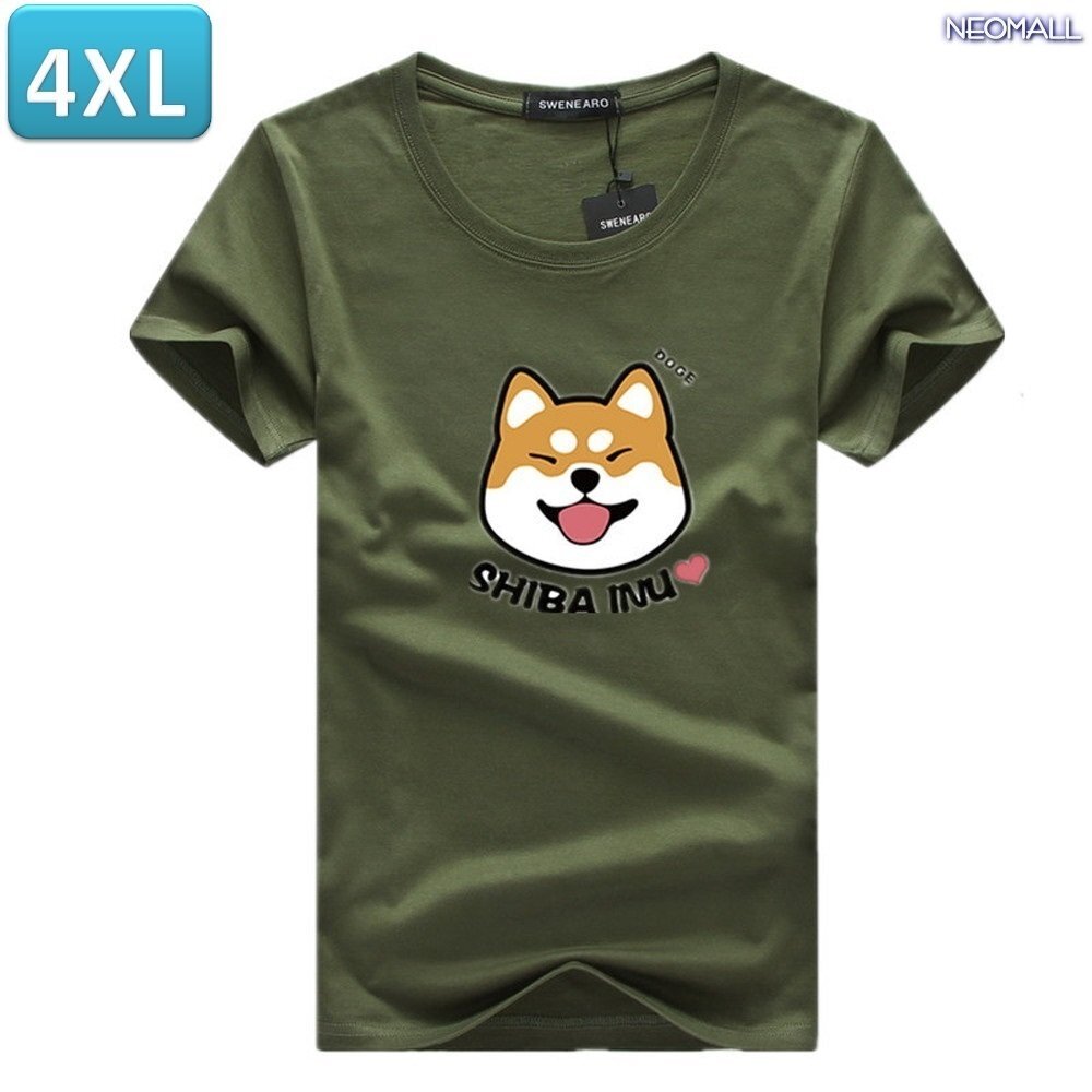 夏にピッタリ ☆ 丸首 半袖 Tシャツ【345】 グリーン 4XLサイズ トップス シャツ シンプル イラスト シルエット 春夏