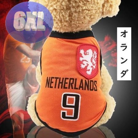 ドッグウェア 春夏 オランダ 6XLサイズ サッカー 代表 ユニフォーム 犬服 大型犬 袖なし 通気性 柔らか 洋服 可愛い