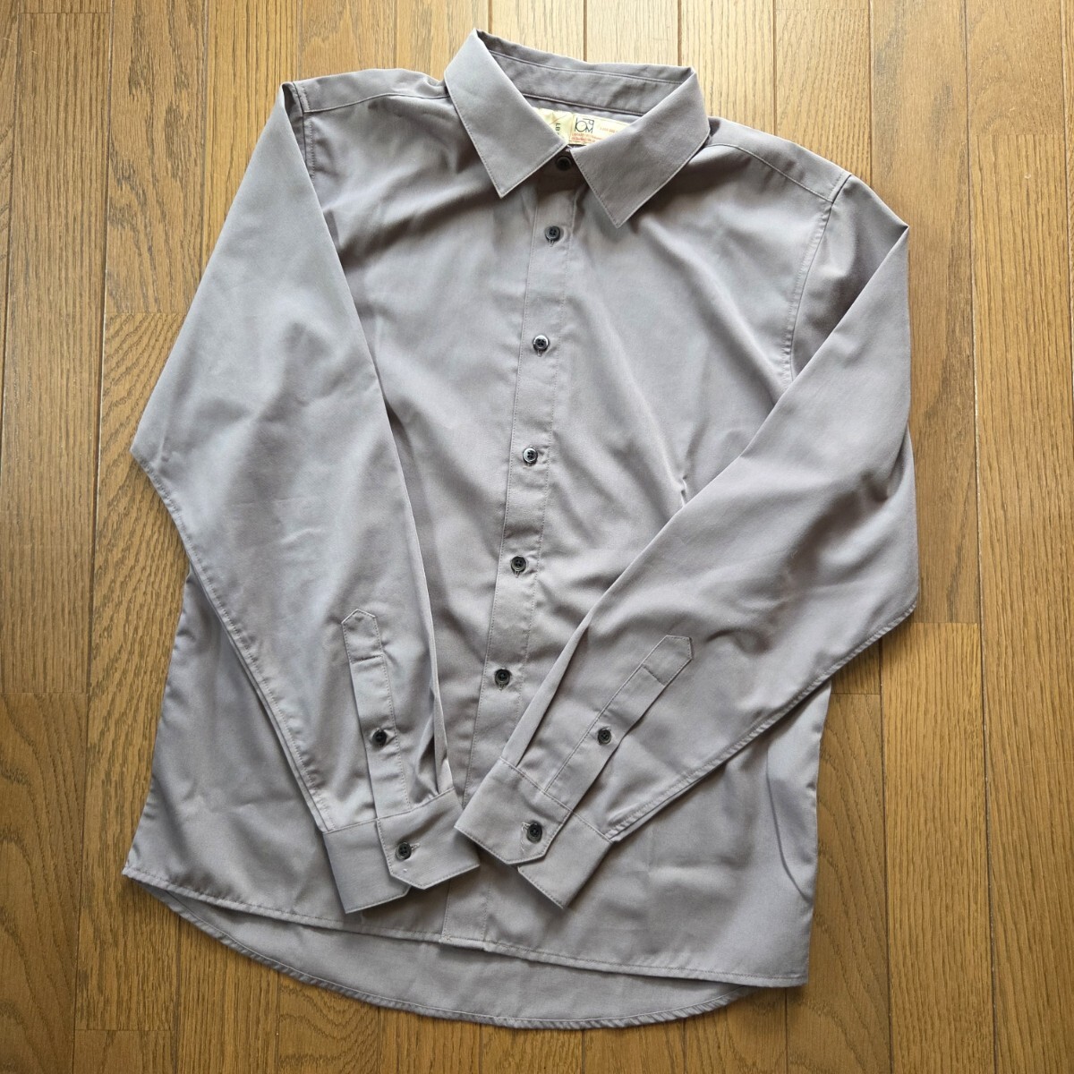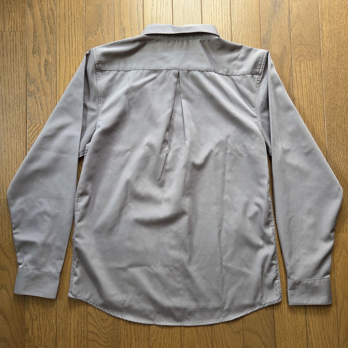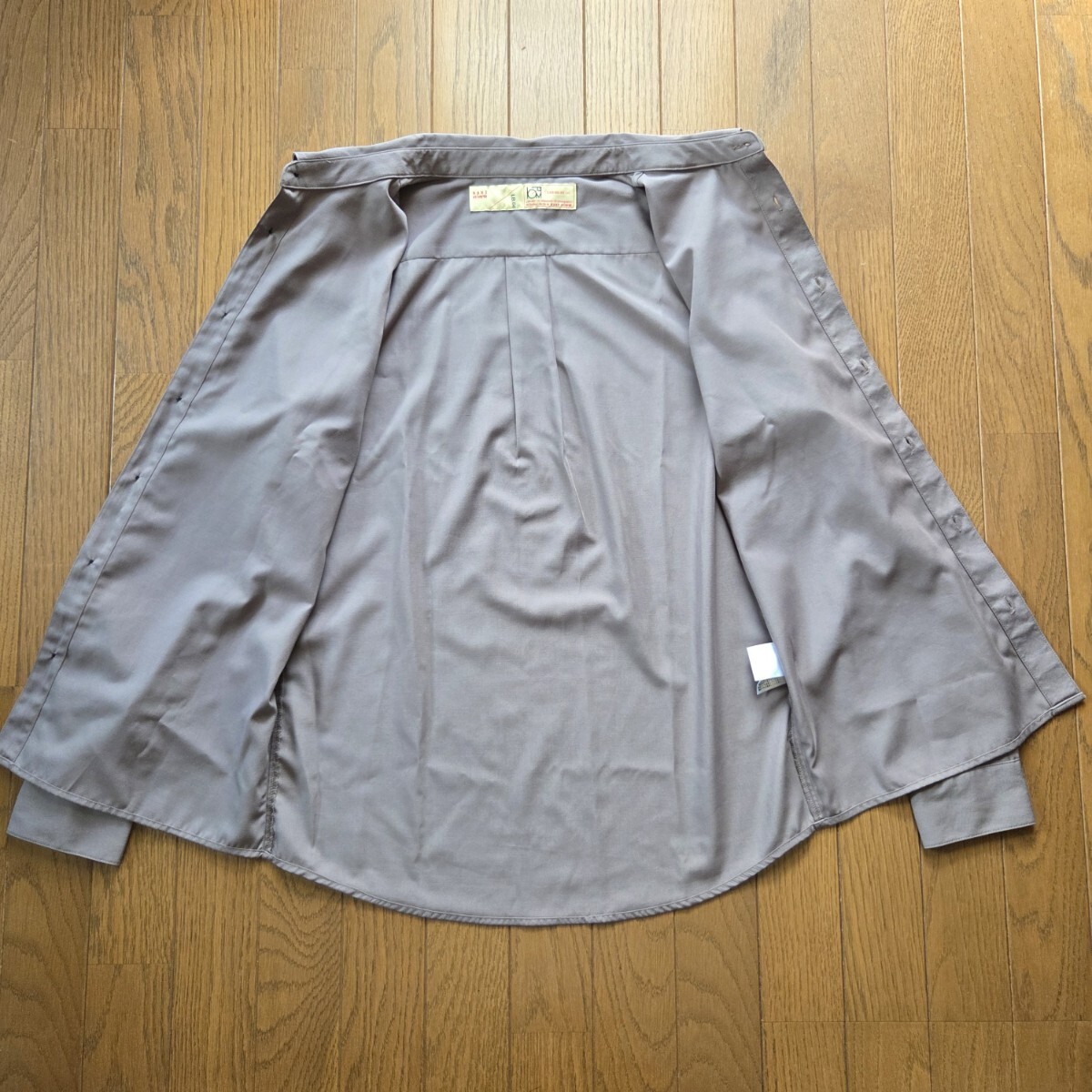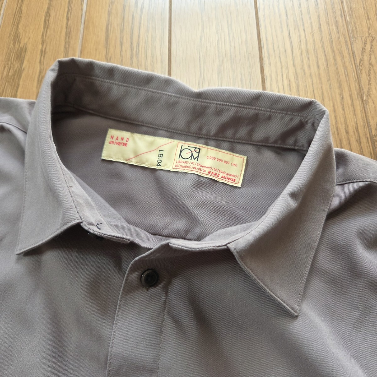 ナノユニバースの、グレージュのスタンダードレギュラーカラーシャツです。