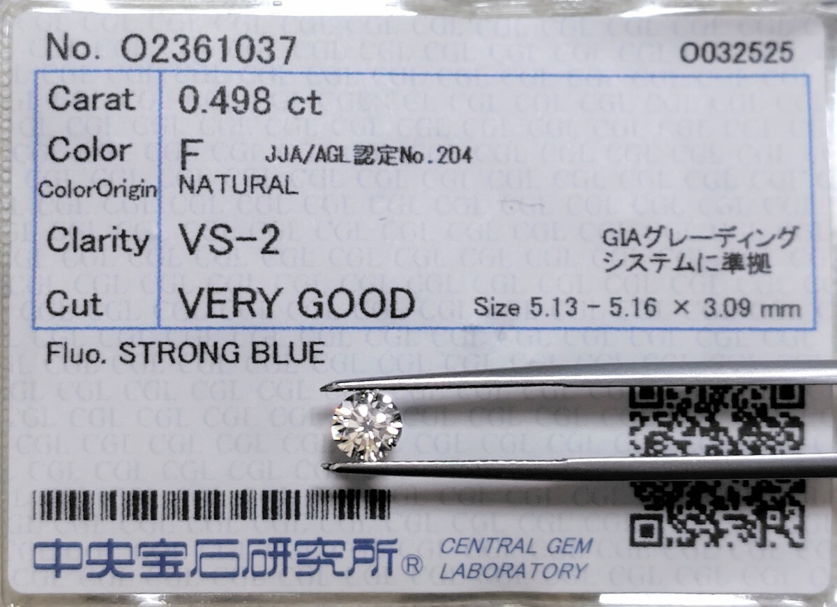 【11/22★安値〜】天然ダイヤモンド ルース 0.498ct F VS2 鑑別 CGL│B2039tq 【0.4ct】 ダイヤ diamond