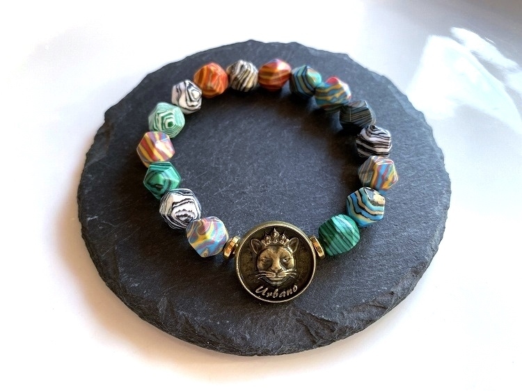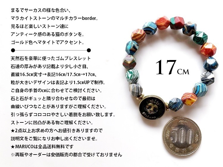 【●MARUCO●】BL450-671マラカイトCIRCUS COLOR&猫 17㎝*天然石ブレスレット【送料無料】