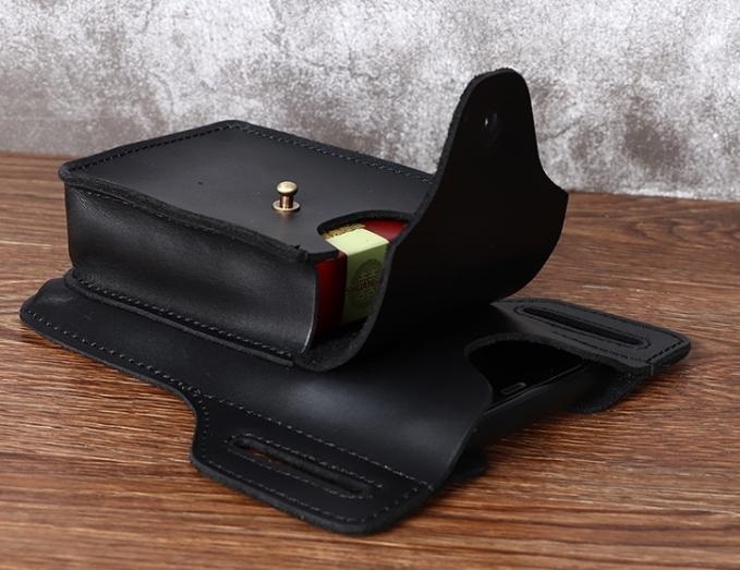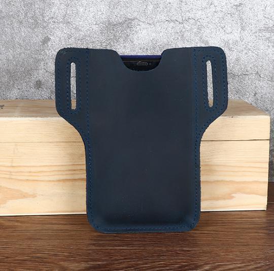 送料コミコミ☆ ベルトに通せる ウェストポーチ 本革 ネイビー 牛革 スマホ タバコ 【n225】