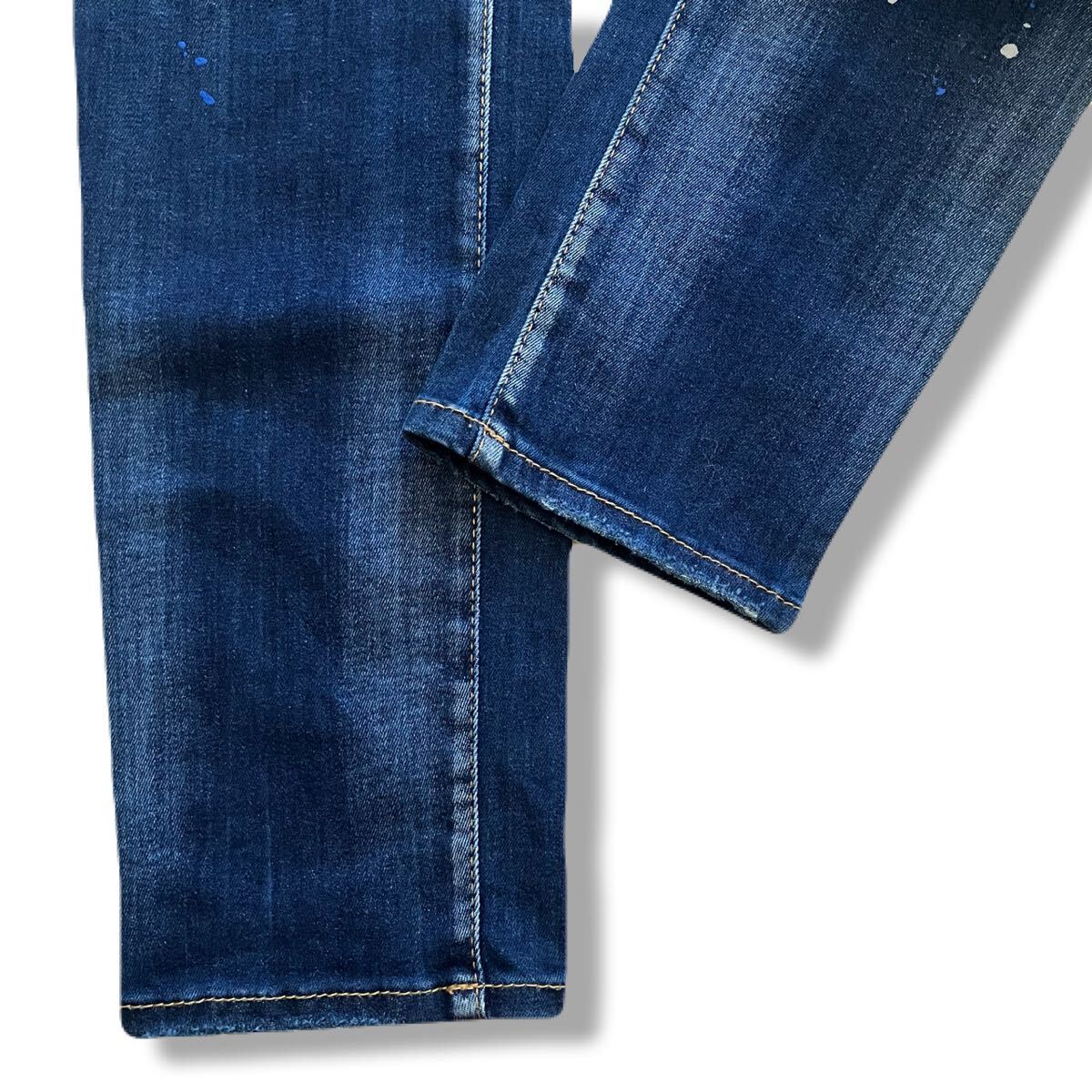 インディゴの濃淡を活かした立体的なウォッシュ加工に加え、ペンキ飛ばしを散りばめた表情豊かな一本。細身のシルエットで脚のラインを綺麗に見せつつ、穿き心地の良いストレッチが効いた仕上がりです。