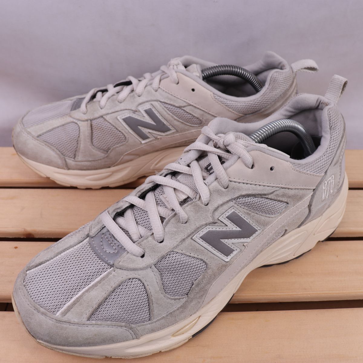 z3389【878】ニューバランス US9.5 27.5cm/灰 ライトグレー ベージュ newbalance メンズ スニーカー 中古