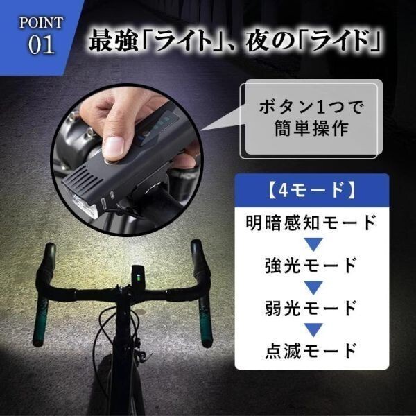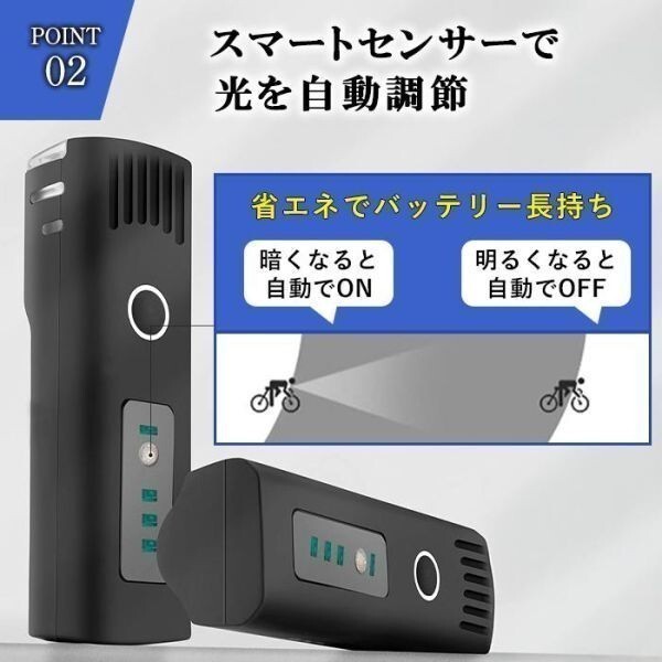 自転車ライト LED 明るい USB充電 自動点灯 ライト 防水 高輝度 小型 軽量 簡単 センサーライト 自動 大容量 (wthl0023)8