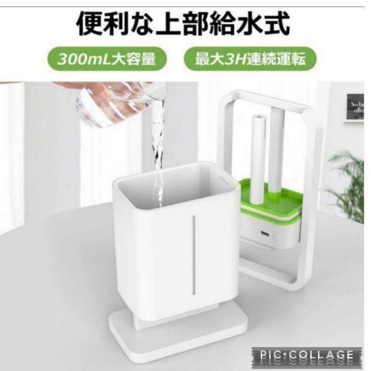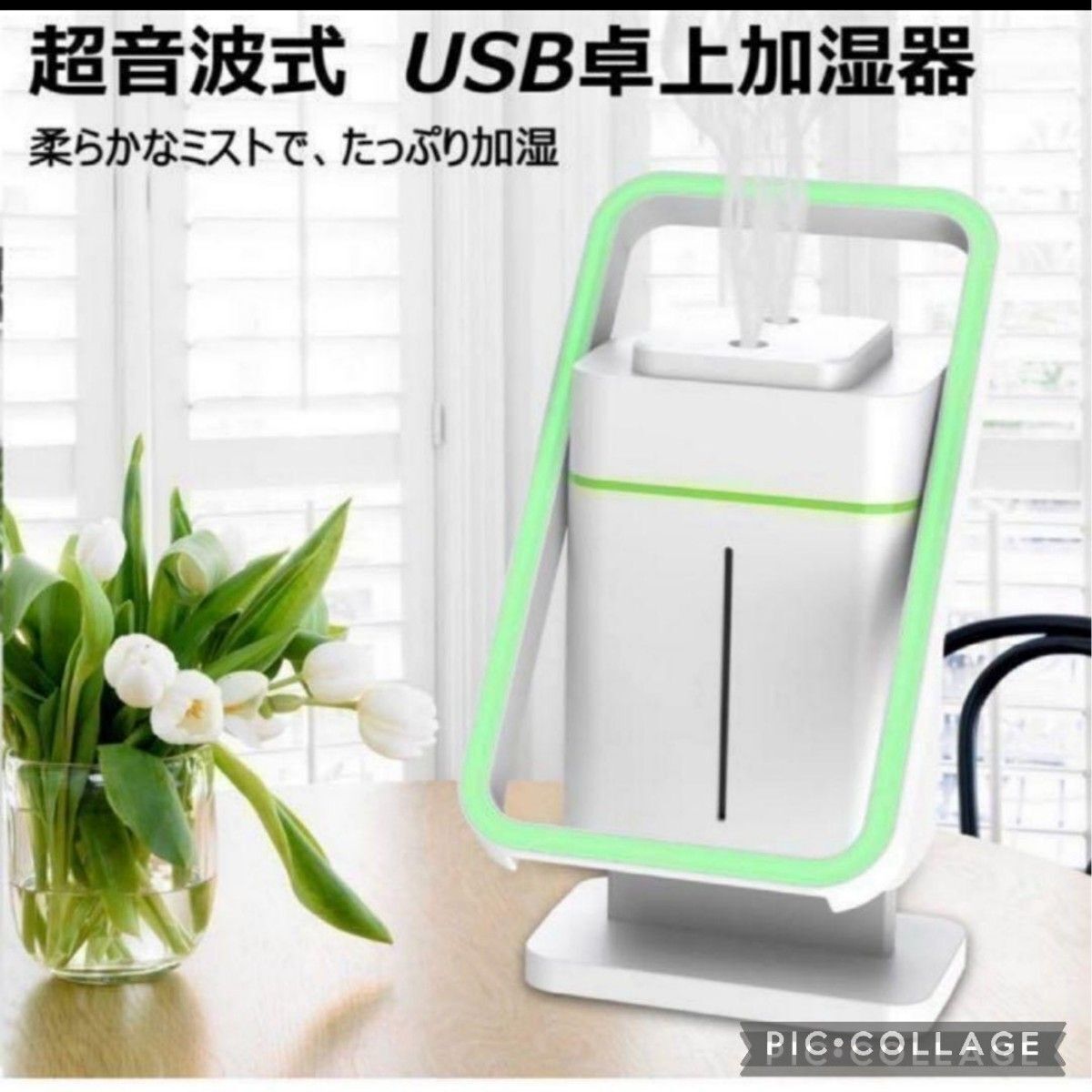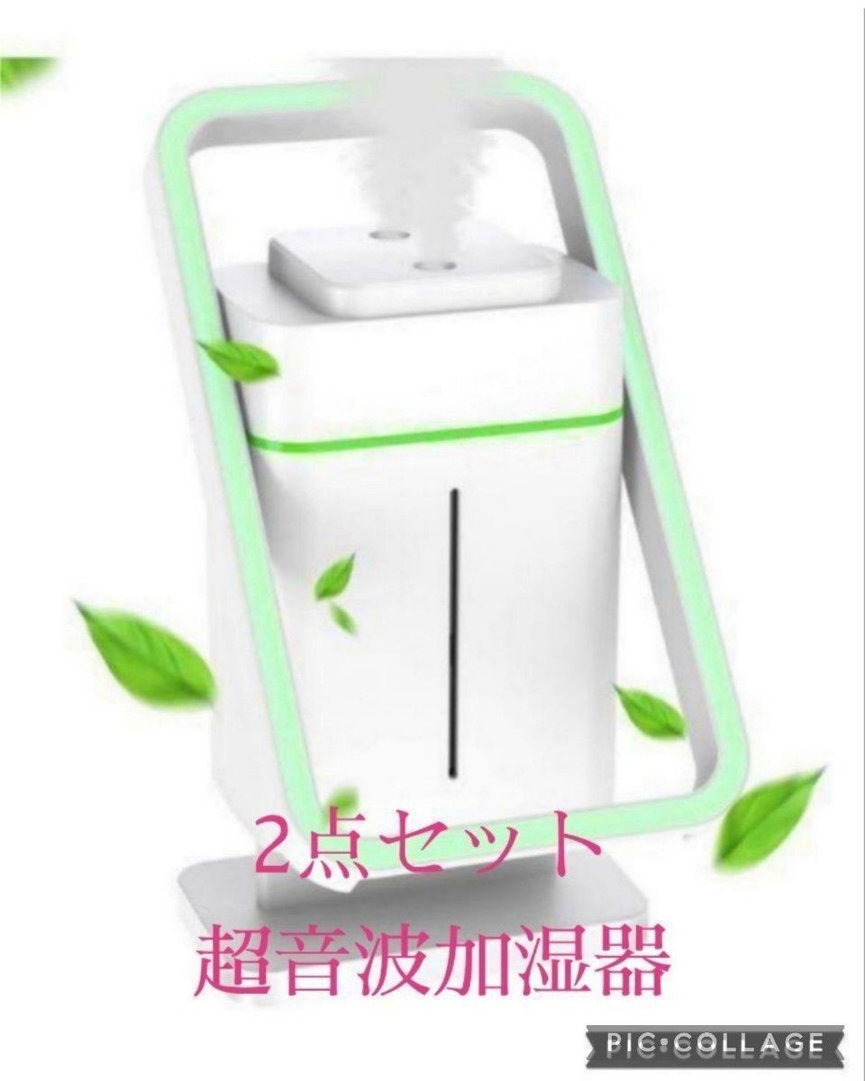 お得な2点セット。乾燥対策!300mlダブルノズル&除菌 超音波式加湿器 卓上 七色ライト 超静音 小型 おしゃれ 白 ホコリ対策