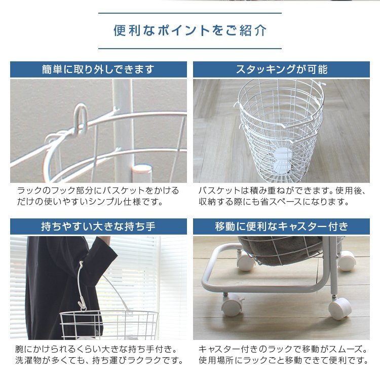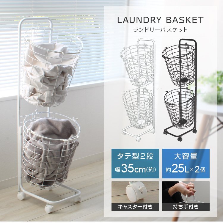 通常のバスケットを分別用に2つ並べて置くと幅を取り、上部にデッドスペースが生まれてしまいます。 こちらの商品は幅約38cmに2つのバスケットを縦に並べることが可能。 デッドスペースを活用することで物が多くなりがちな洗濯機まわりも無駄なくすっきり。 狭くなりがちなスペースを有効に活用することができます。 2つのバスケットは取り外しも可能で、持ち手があるのでベランダに運ぶ時なども便利にお使いいただけます。 キャスター付きで、ラックごとの移動もスムーズです。 ランドリー以外にキッチンの食品ストッカー、リビングの雑貨入れ、おもちゃ収納も使えます! 【商品仕様】 カラー:ホワイト サイズ:(約)幅37.5×奥行き37×高さ107cm バスケット内寸:(約)直径33×高さ37cm 重量:(約)3kg 容量:(約)50L(上段25L、下段25L) バスケット耐荷重:(約)10kg 素材:スチール、ナイロン 【注意事項】 ※お客様組み立てになります。(プラスドライバーはお客様でご準備ください。) ※スチール製の為、浴室ではご使用いただけません。 ※商品は、モニターによって色合いが異なって見える場合があります。 ※仕様・デザインは改良のため予告なく変更することがあります。 |