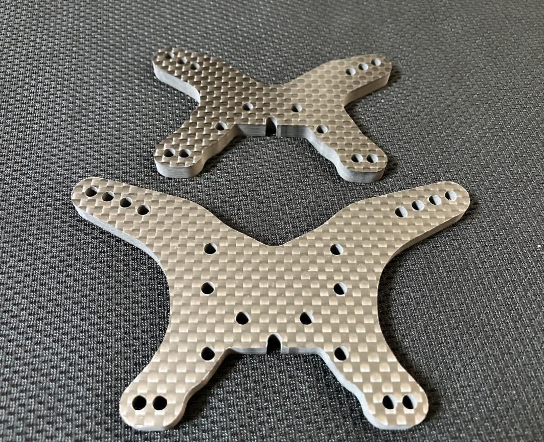 生産終了絶版の純正カーボンダンパーステーを参考に製作。