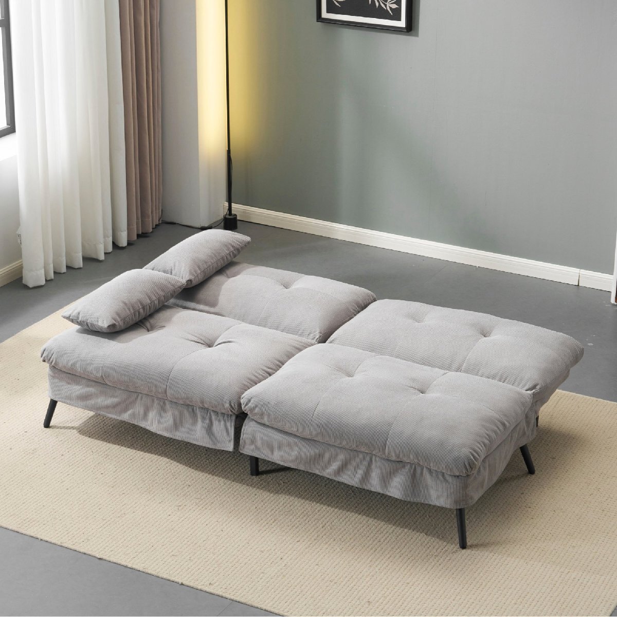 Product Name:ソファベッド ソファ ベッド 組立て簡単 事務室用 サロン用 来客対応 2人 リクライニングソファ 背もたれ6段階 省スペース 一人暮らし お手入れ簡単 コンパクト 幅182㎝ ふわふわ 枕付き 2WAY使用 取り外し可能な脚