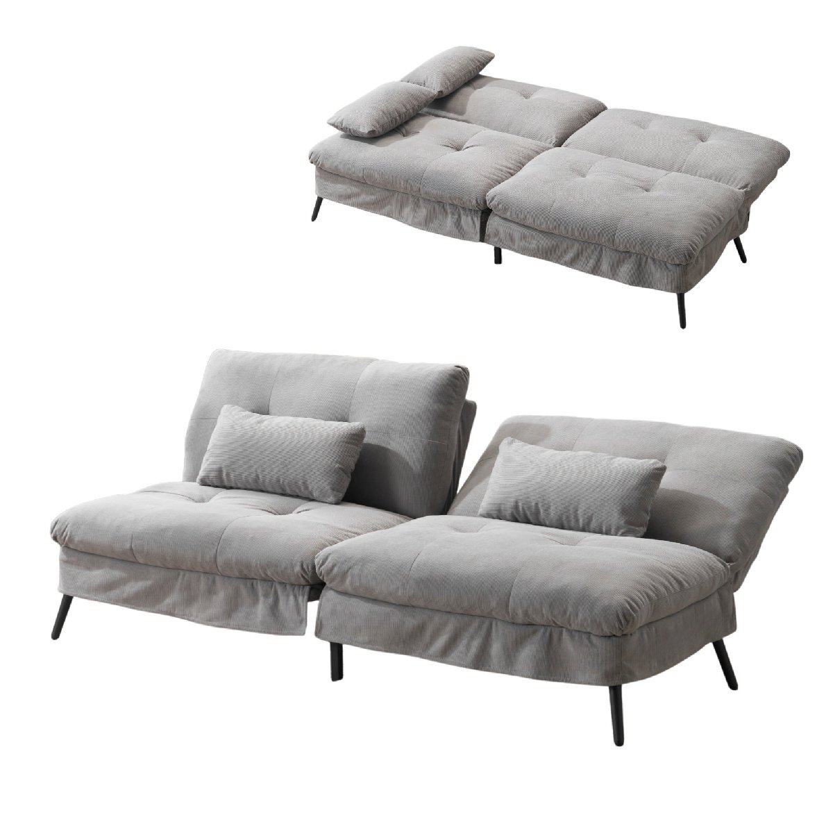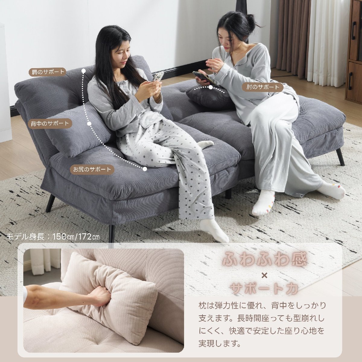 • 【柔軟な背もたれ調整】背もたれには 6 段階の調整機能があり、さまざまな使用ニーズに合わせて角度を正確に調整できます。背もたれを最も低い位置にすると、ソファは完全にベッドに変身し、一時的にお客様を泊める場合や、快適に横になってドラマを見たり本を読んだりする場合など、どんな状況にも簡単に対応でき、ソファとベッドの二重機能を実現し、空間の利用効率を大幅に向上させます。