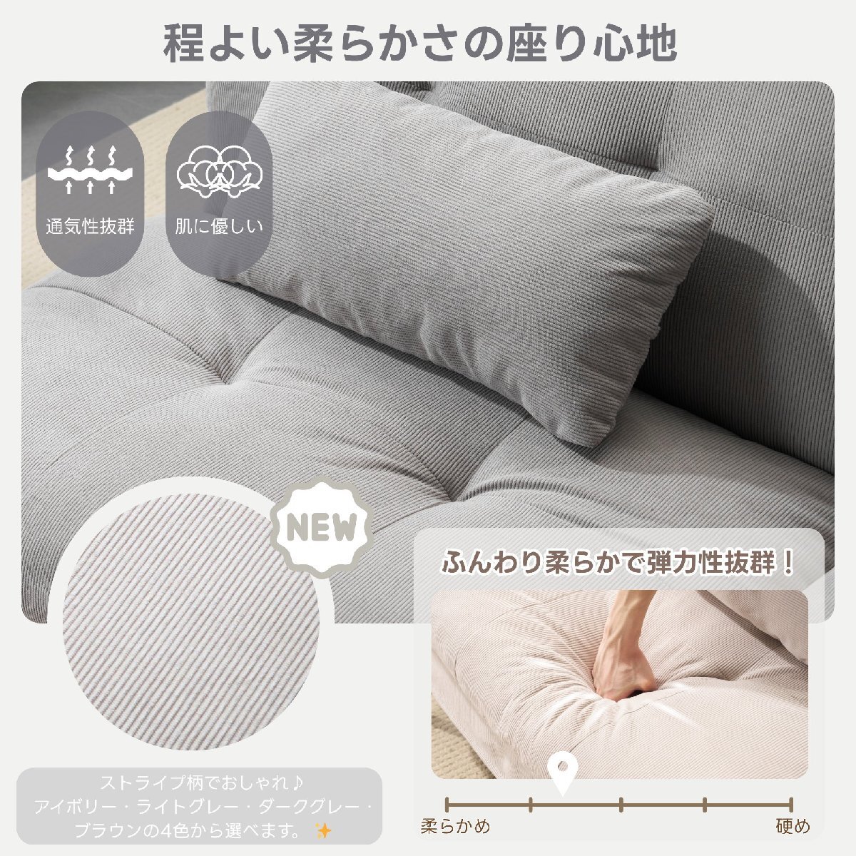 • 【快適な座り心地】高品質な詰め物素材を採用し、座り心地はふっくらと柔らかく、まるで雲の上にいるような感じです。生地の触感は滑らかで肌に優しく、直接肌に触れる場合でも、衣服を着て触れる場合でも、快適な触感体験をもたらします。全体の造形は人体工学に沿っており、体をよく支えることができ、長時間座っても疲れにくいです。