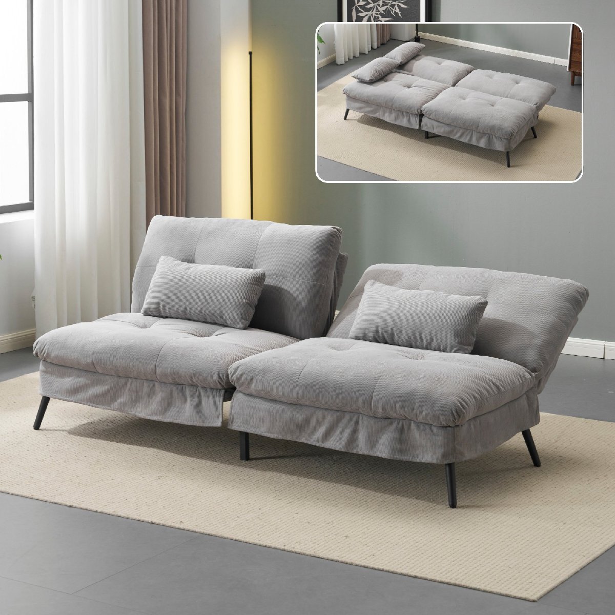 • 【脚の取り外しで 2 つの小ソファに変形】ソファの脚は簡単に取り外せます。脚を取り外すと、このソファは 2 つの独立した小さなソファに分解できます。この柔軟なデザインにより、友達が集まる際など、複数人が同時に快適に座るニーズに応えられます。また、空間のレイアウトや使用シーンに合わせて、2 つの小ソファの配置位置を自由に調整でき、空間の活用をより柔軟かつ多様にし、ホームライフに豊かな可能性と利便性をもたらします。