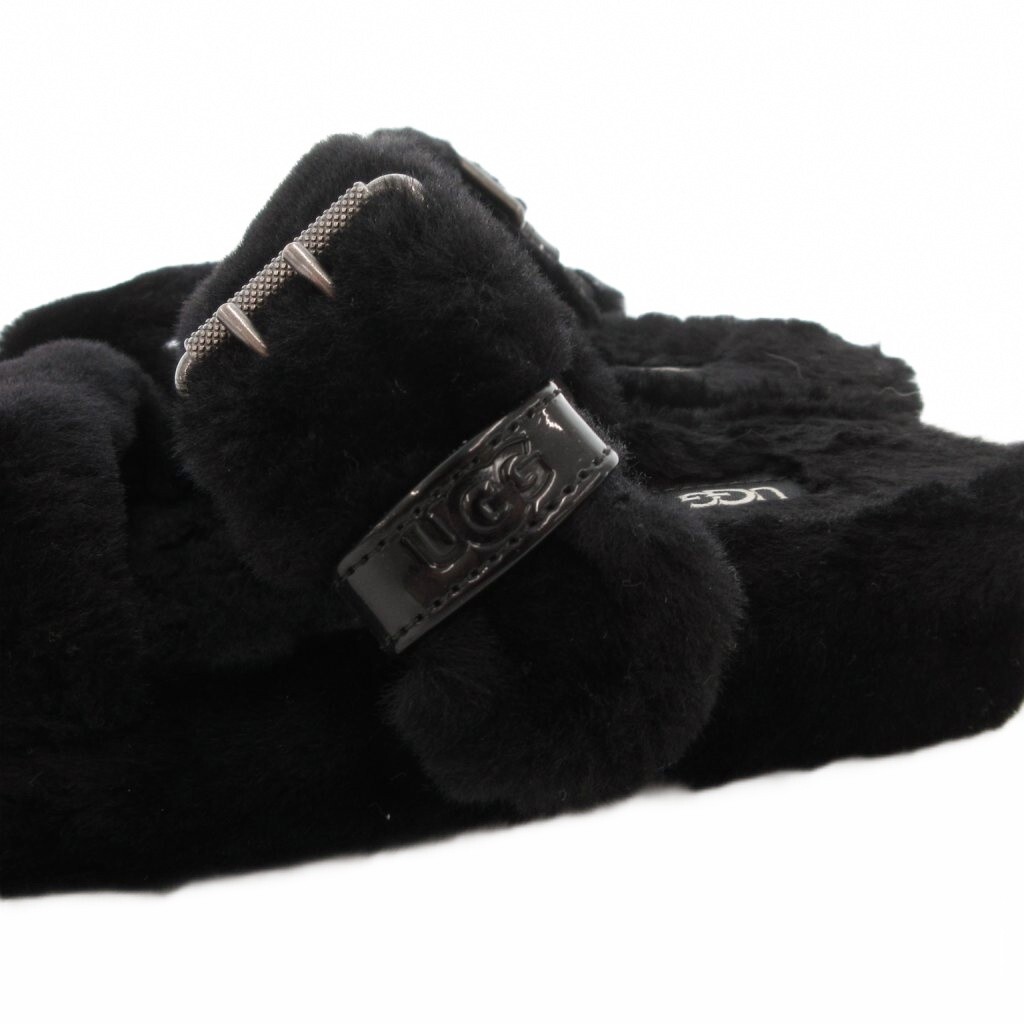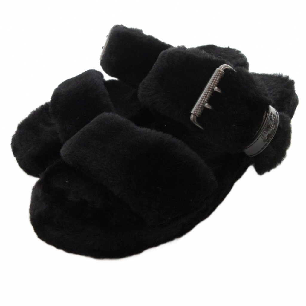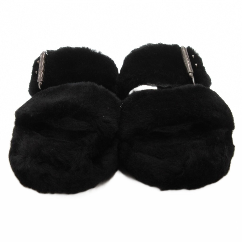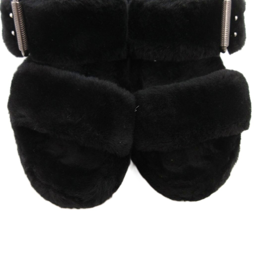 アグ オーストラリア UGG australia ファズ イヤー バックレス サンダル シープスキン フェイクファー 24cm US7 黒 ブラック