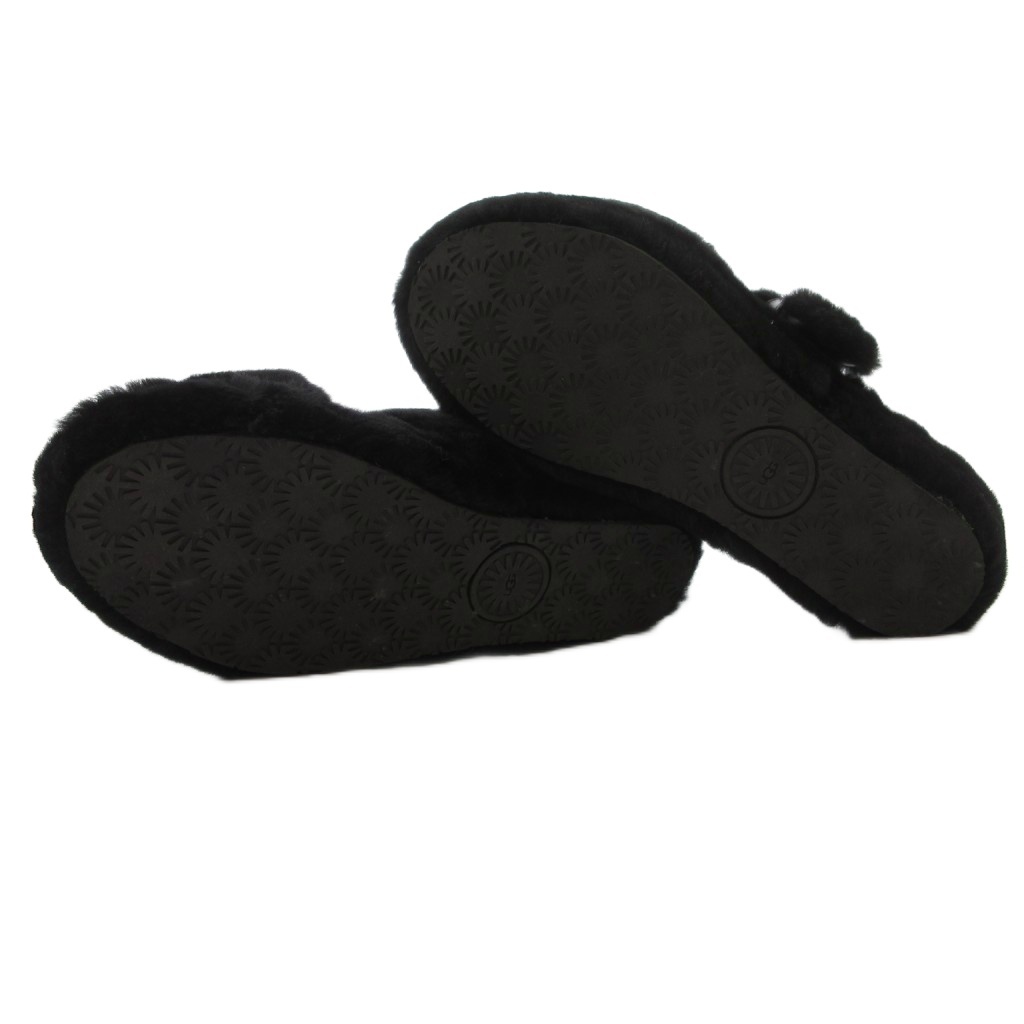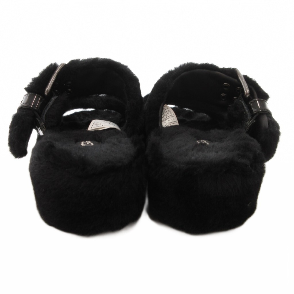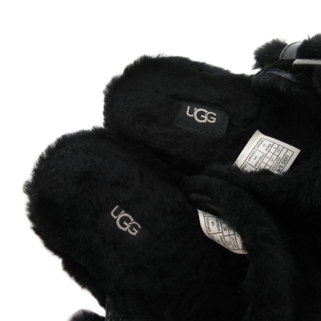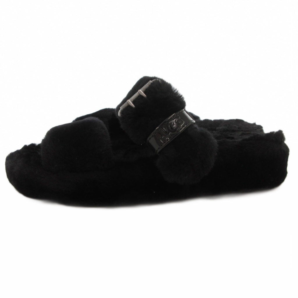 アグ オーストラリア UGG australia ファズ イヤー バックレス サンダル シープスキン フェイクファー 24cm US7 黒 ブラック