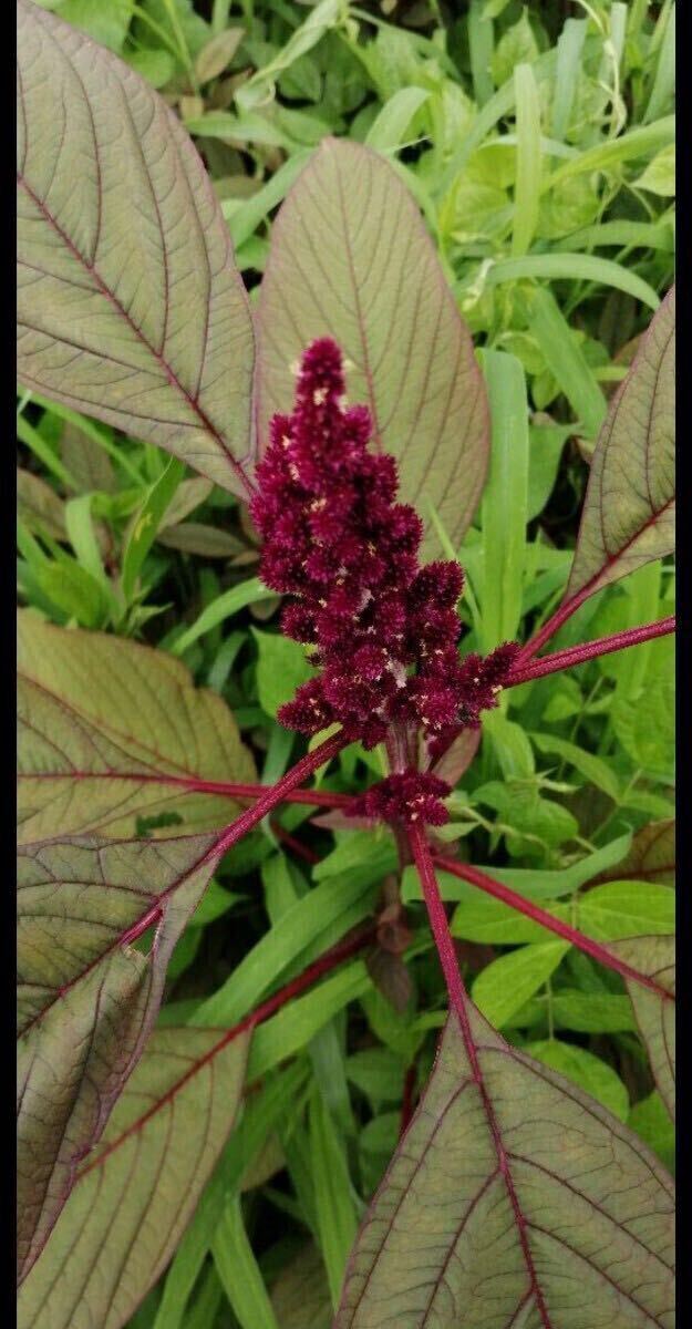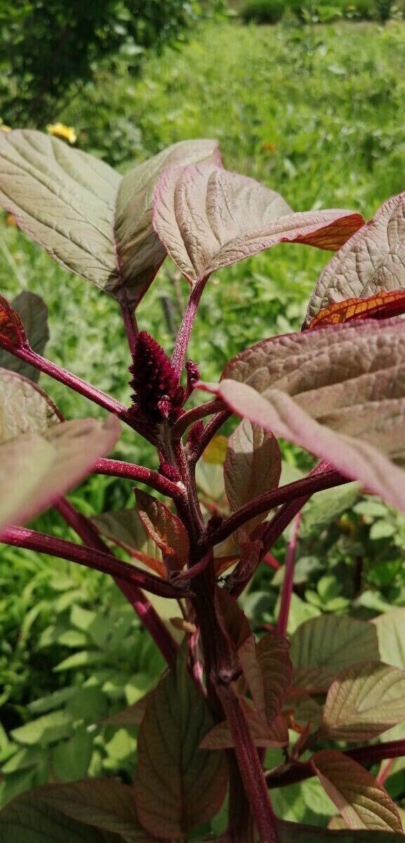 1つのレッドアマランサスから、たくさん赤い花が咲き、