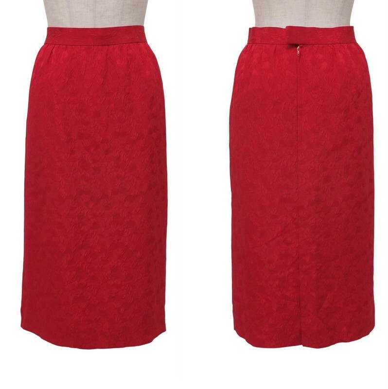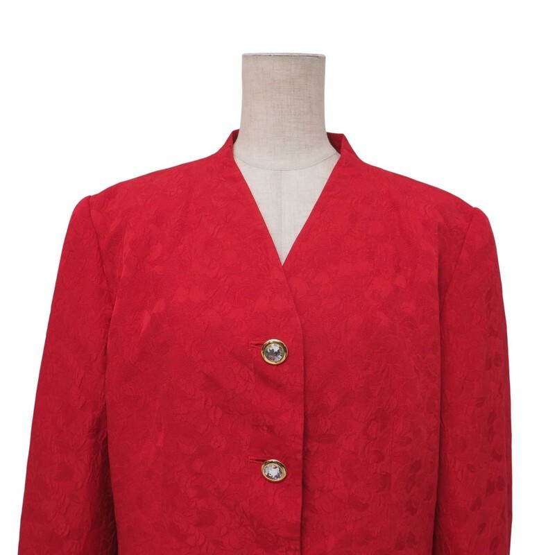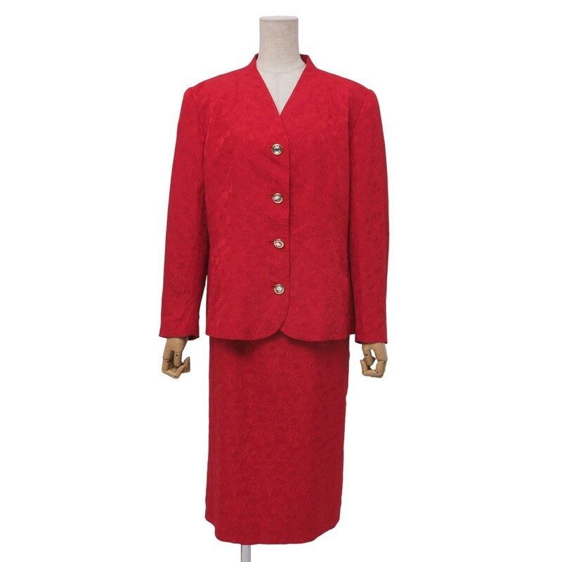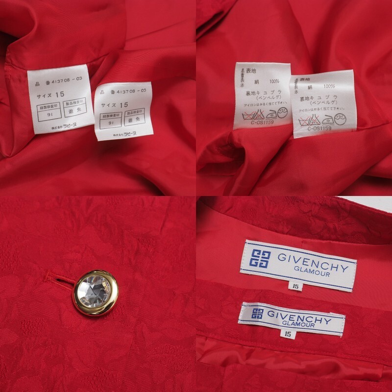 | MI3283=ジバンシィ/GIVENCHY GLAMOUR*ヴィンテージ*セットアップスーツ*シルク*フラワー柄*ジャケット*スカート*サイズ15*レッド系 | |||